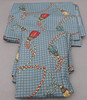 Ett par blårutiga gardiner med mönster, ca 140x215 cm.