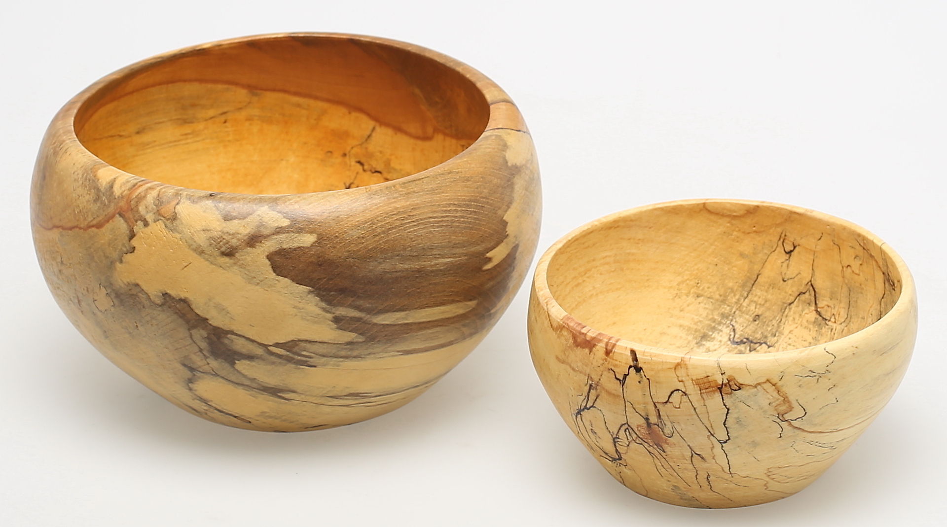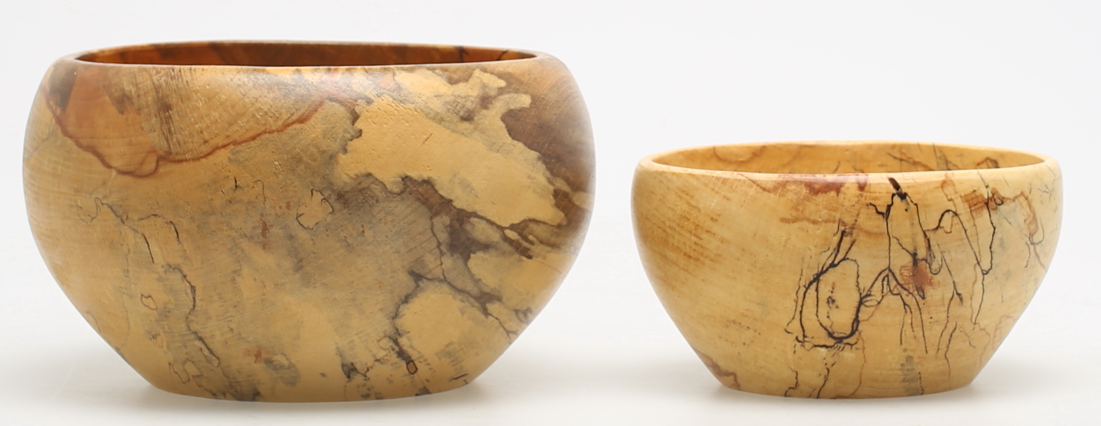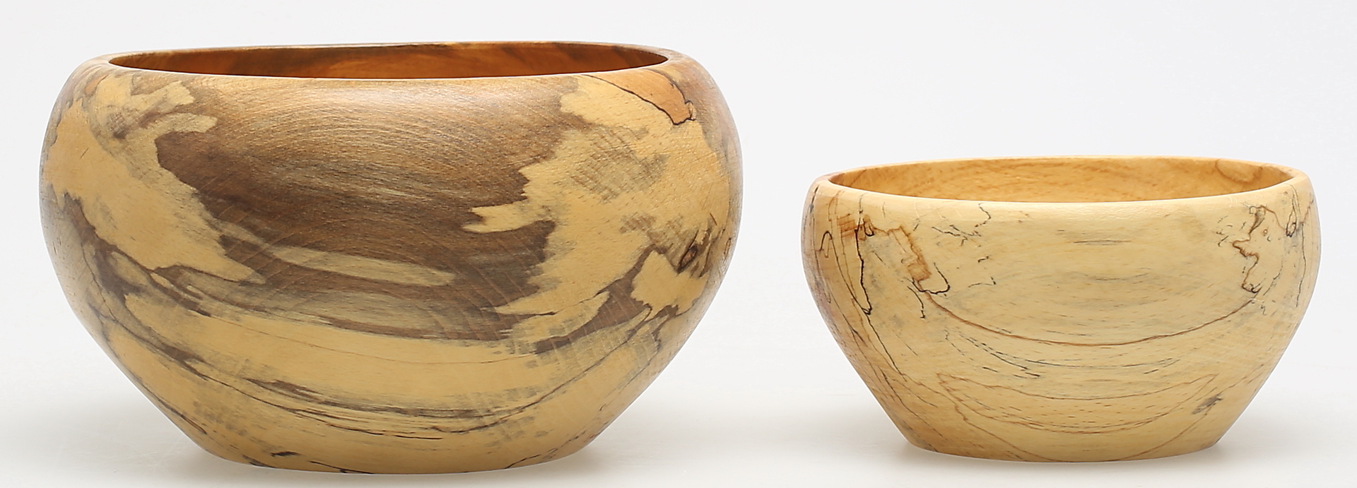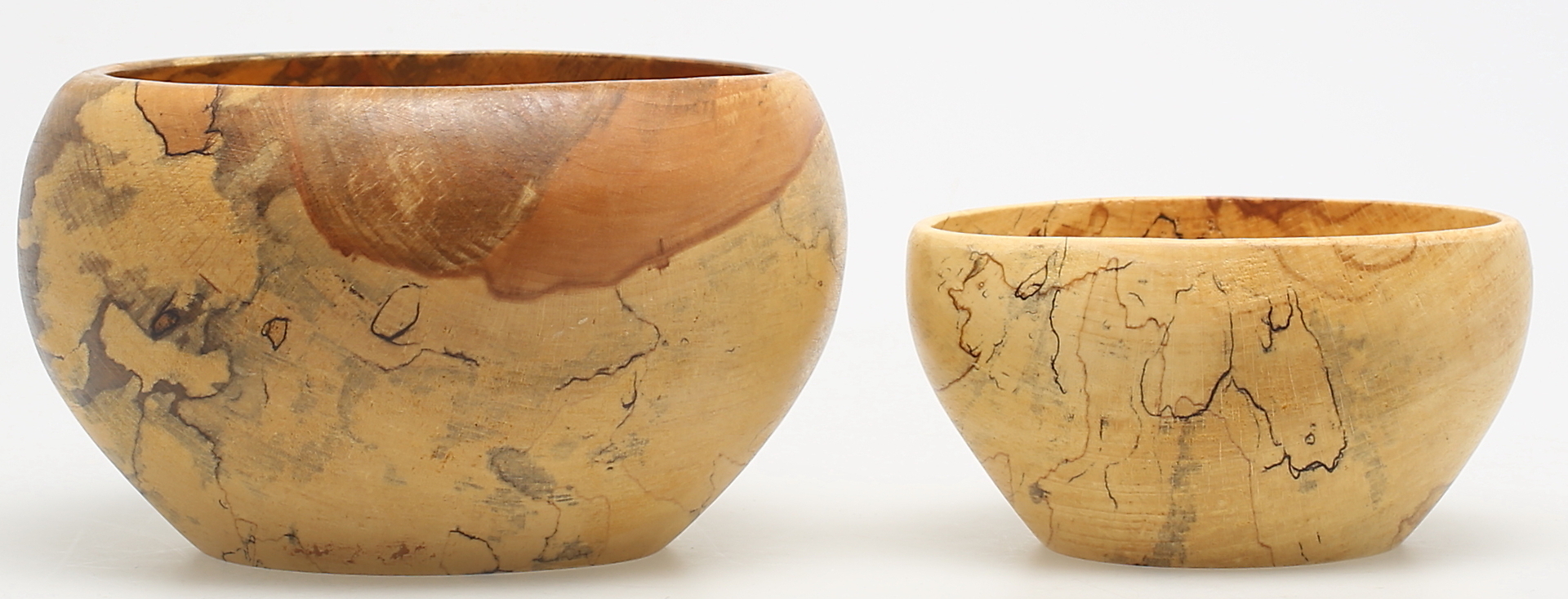 146630. GÖSTA ISRAELSSON. Träskålar (2) flambjörk, monogramsignerade.