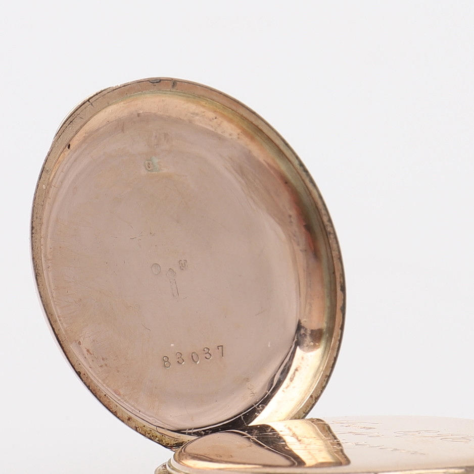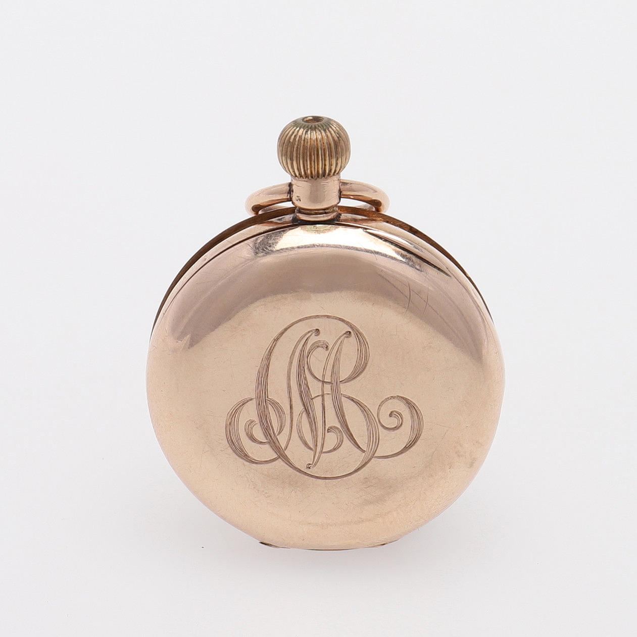 9k guld, urtavla med röd tolva, diameter 35 mm, vikt 32,6 gram.