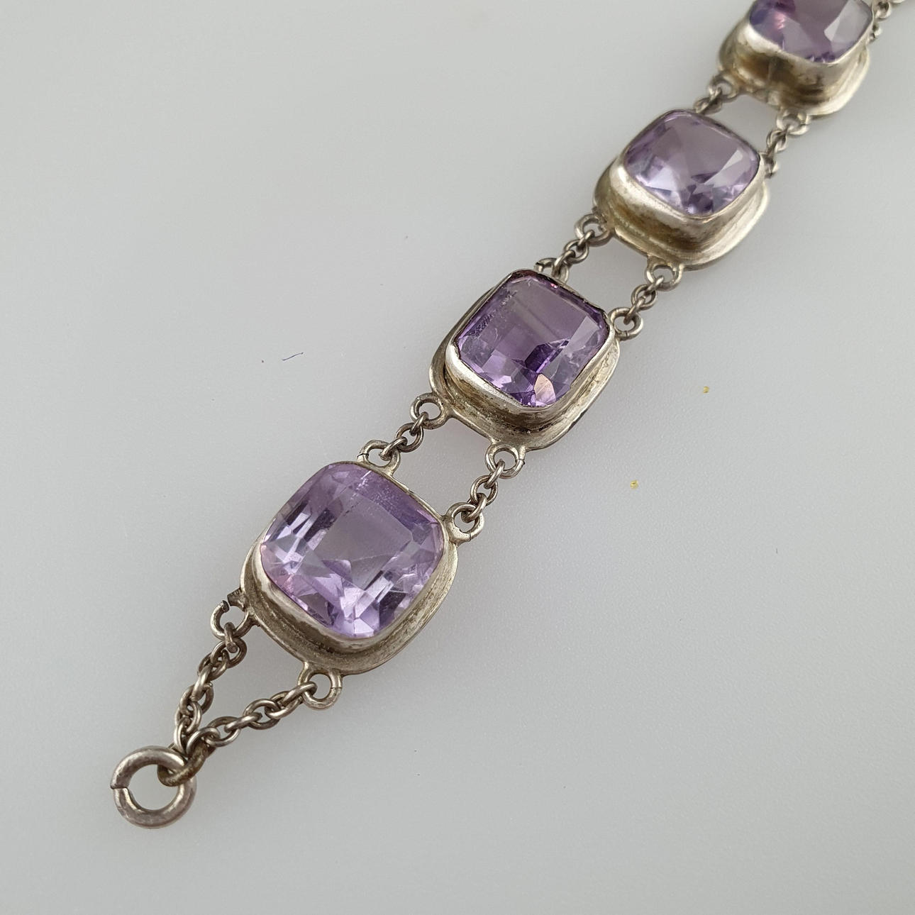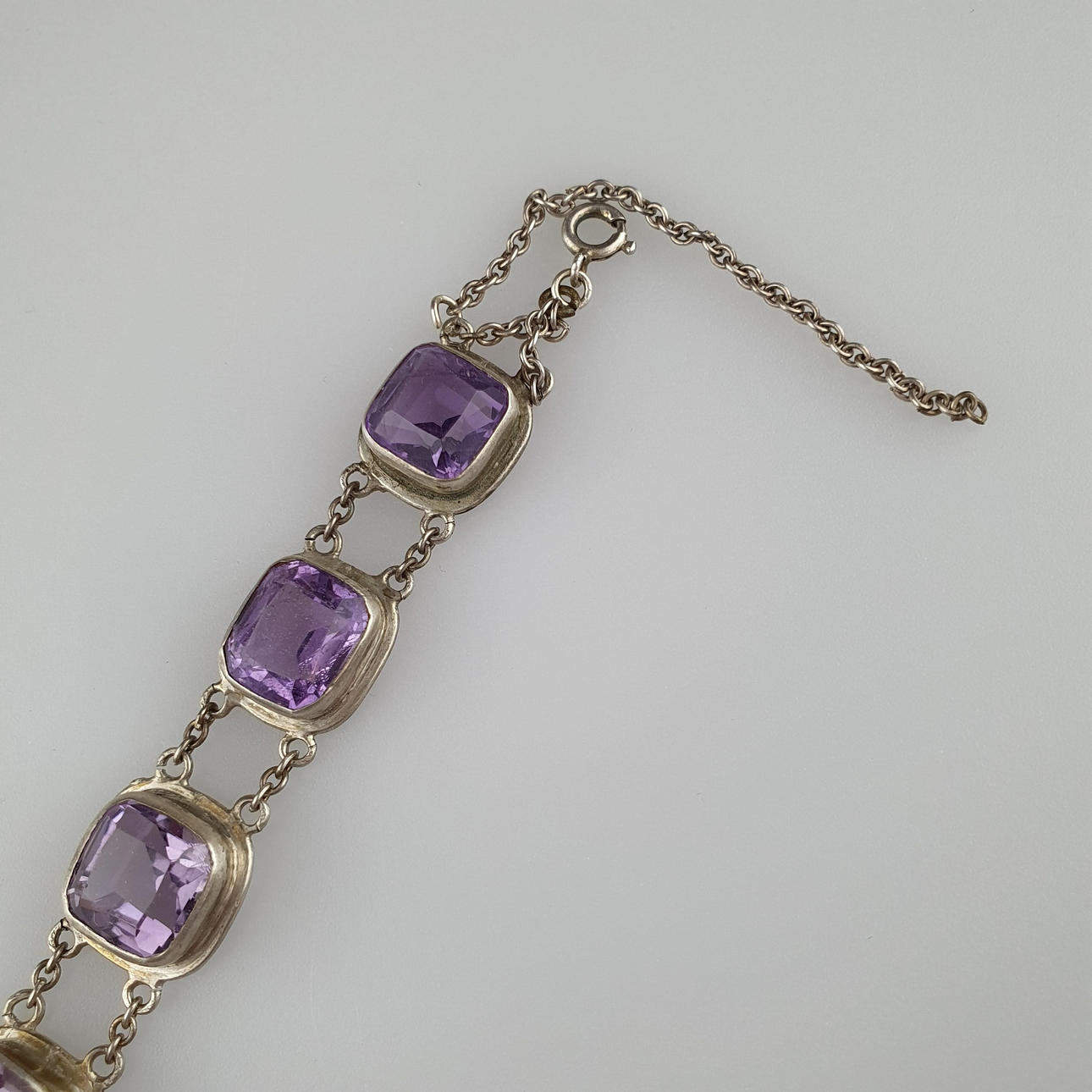 Länkarmband med 8 fasettslipade ametister, L ca 19 cm, ca 15,5 g.