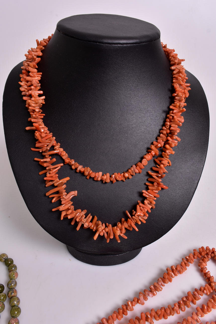 3 st collier, korallben