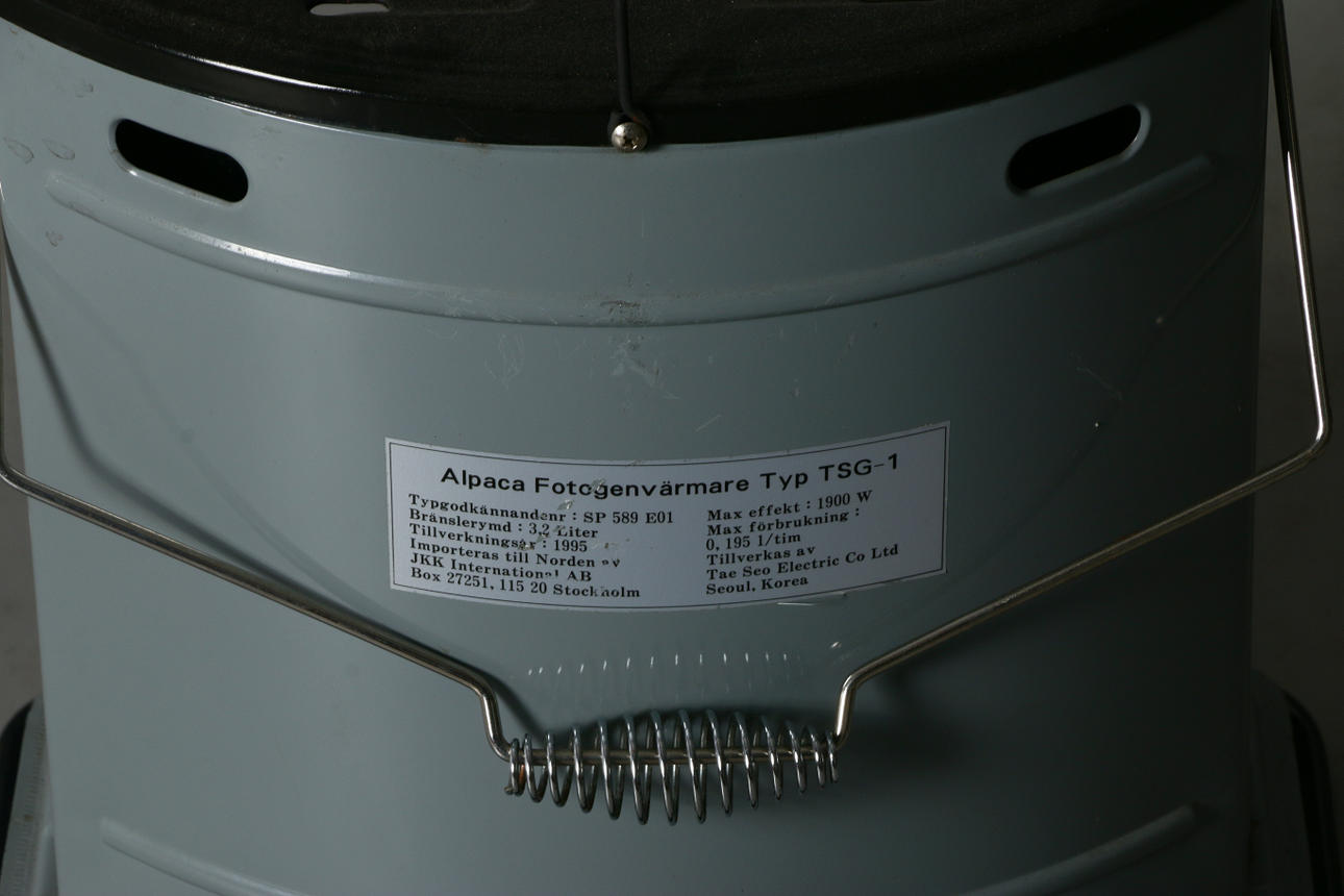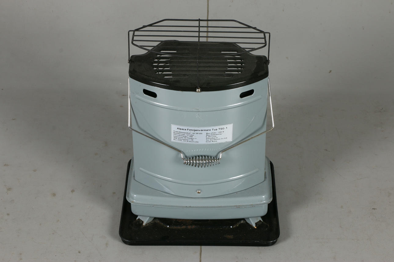 Fotogenvärmare med längd 40, bredd 35, höjd 50 cm.