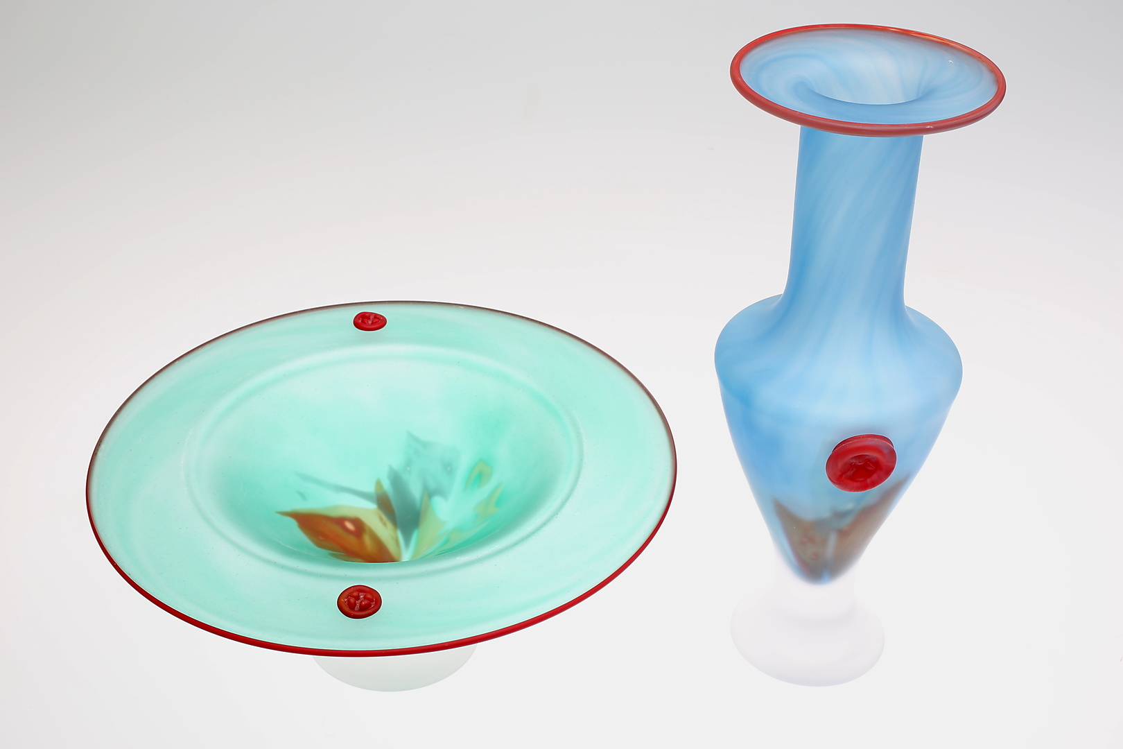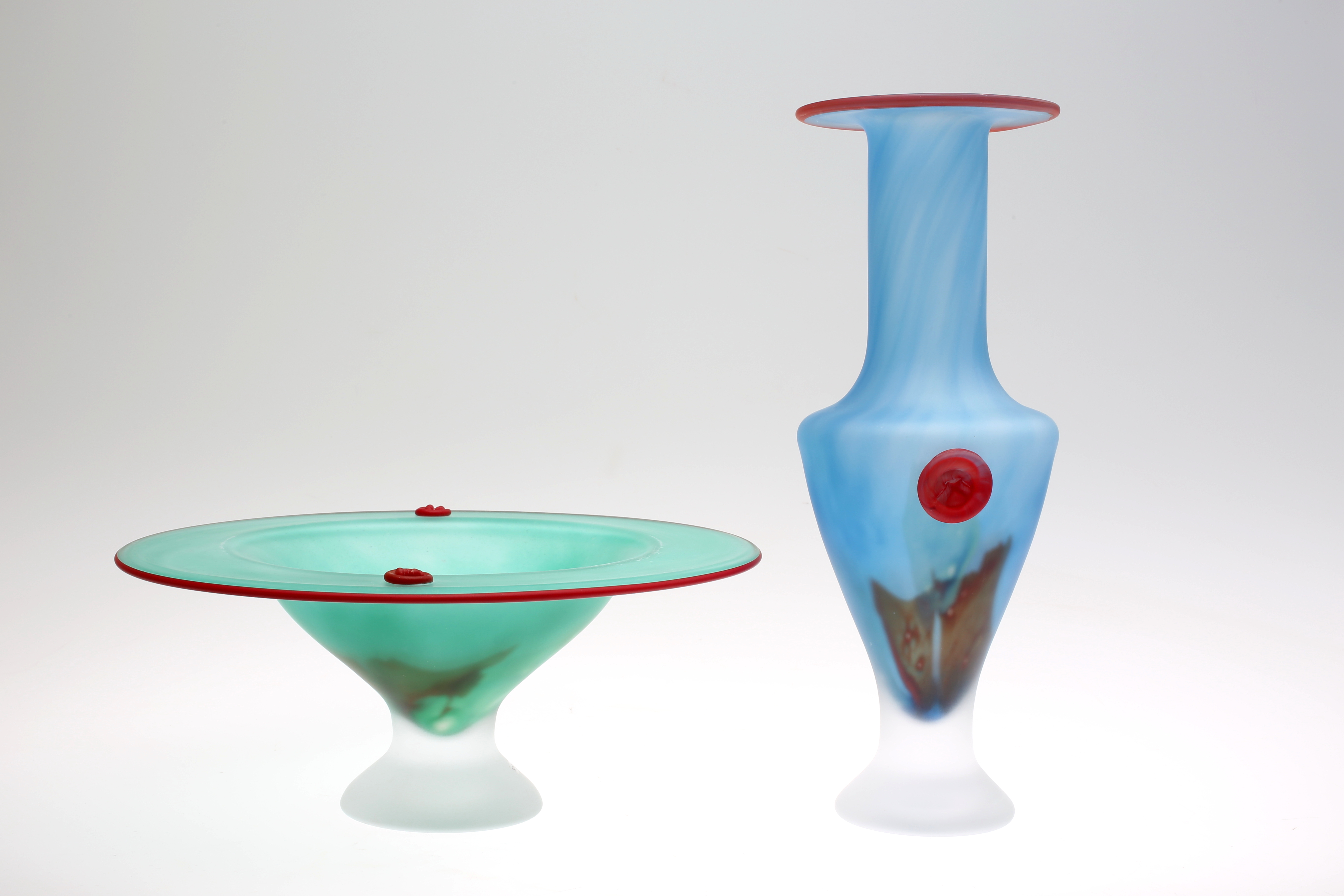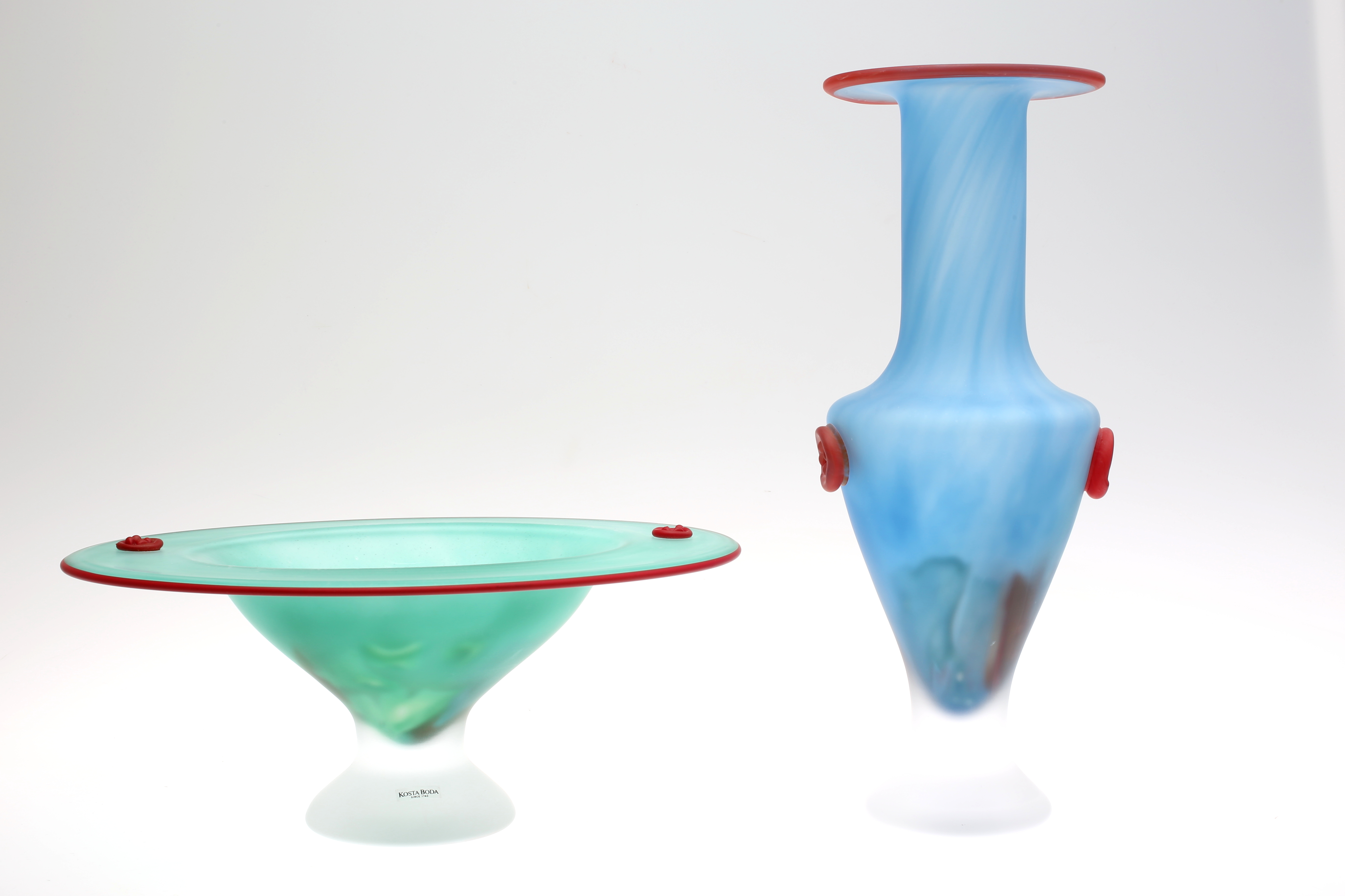 147472. GLASFÖREMÅL, 2 st Vas samt Fruktskål, Kosta Boda.