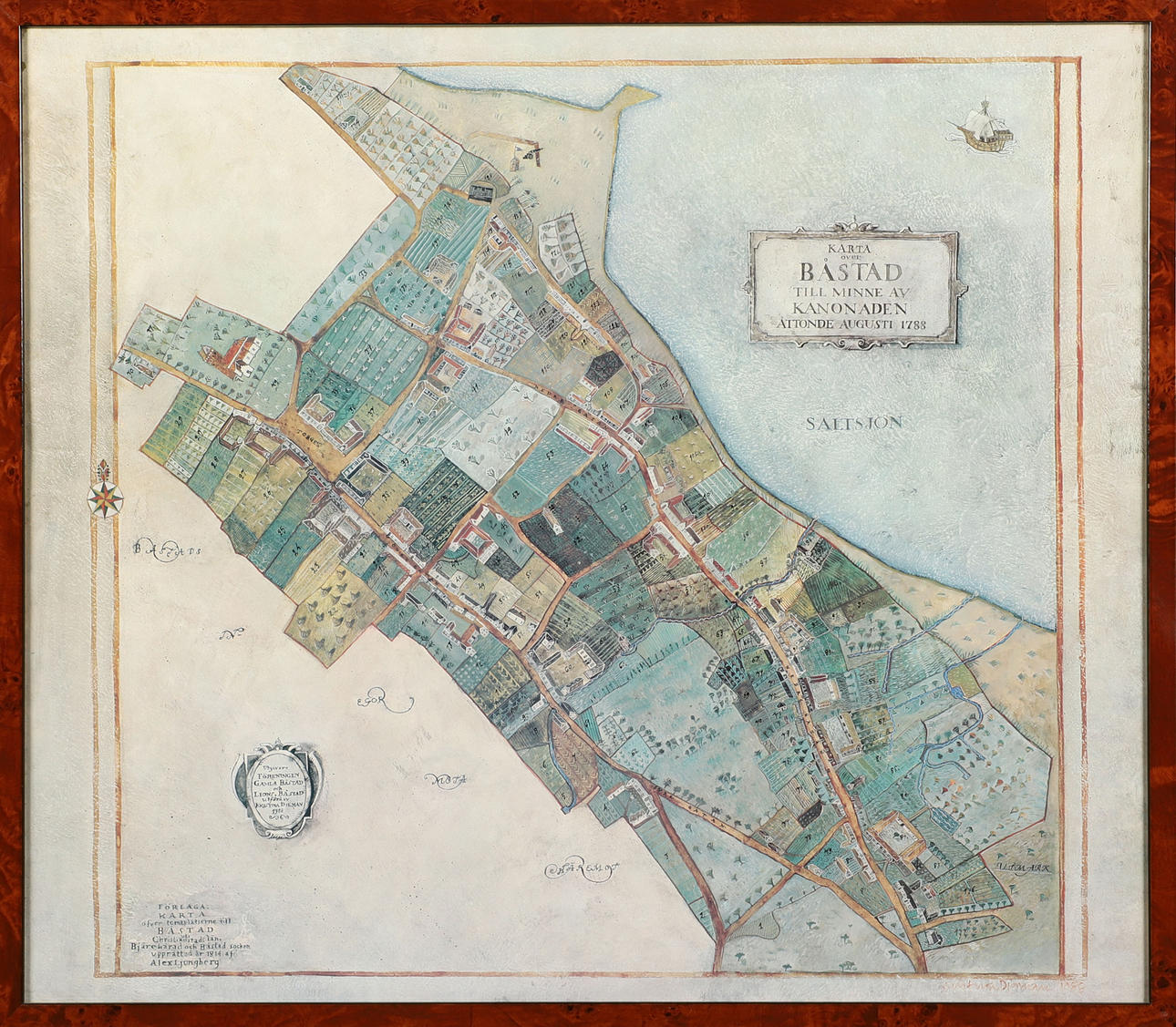 KARTA ÖVER BÅSTAD, trycke efter original från 1788.