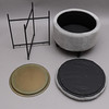 Brickbord med svart metallställ och mässingsbricka. Höjd ca 47 cm, diameter ca 43 cm.