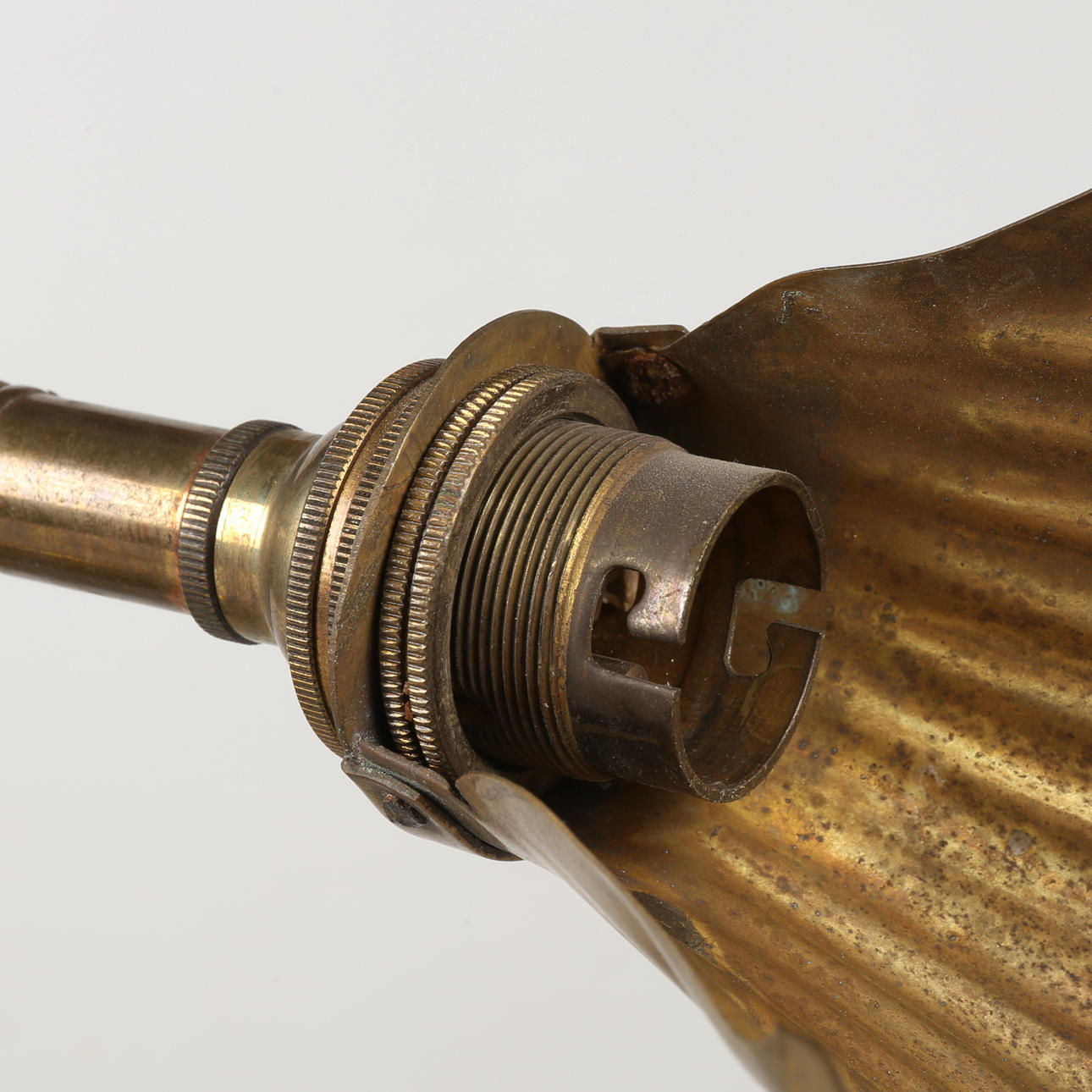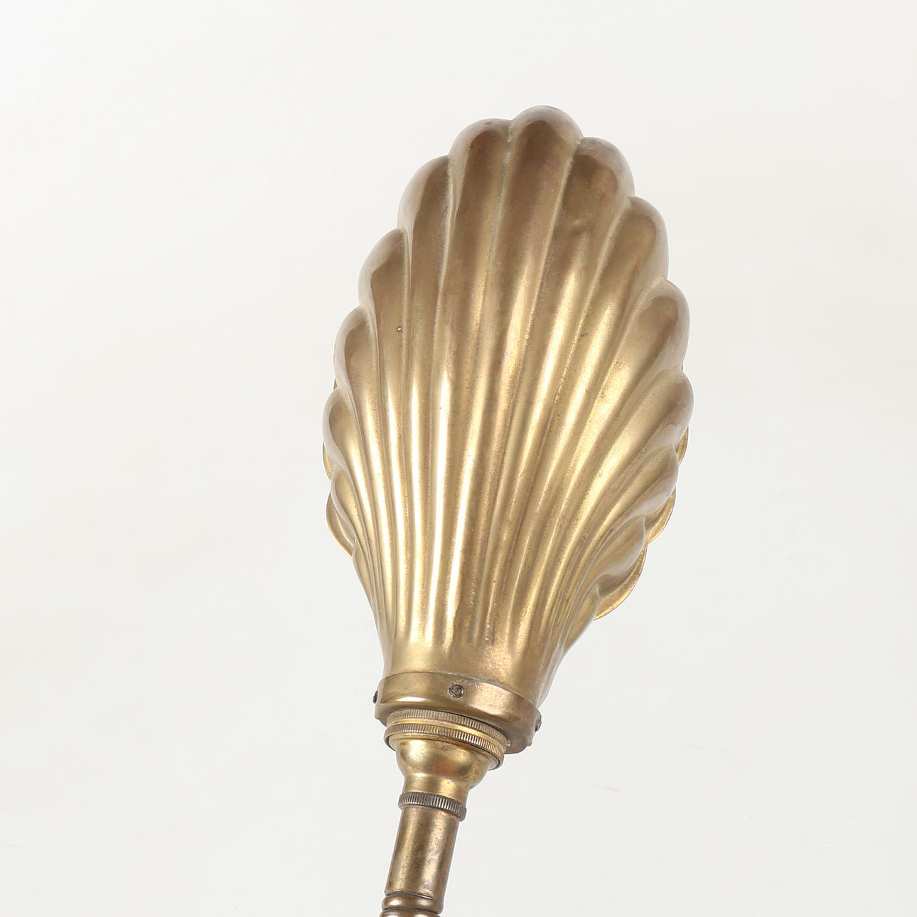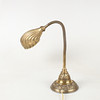 Mässing, böjlig arm, skärm i form av snäcka, ornamenterad fot, höjd ca 38 cm.