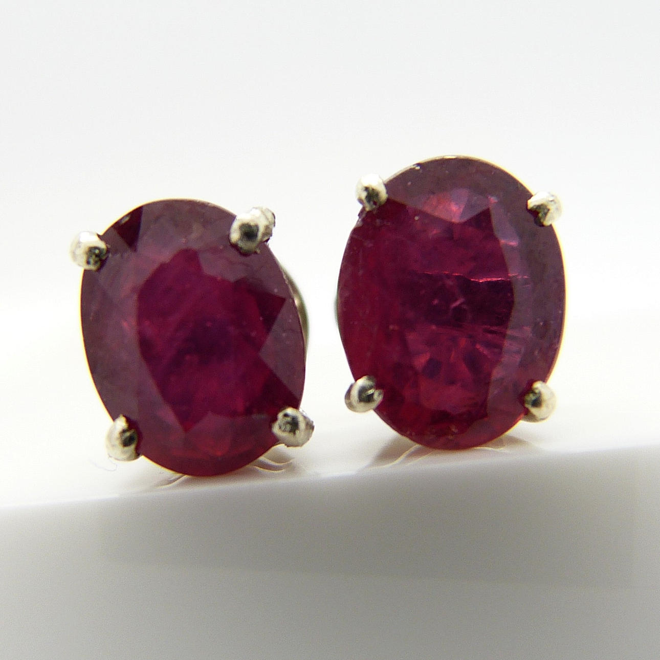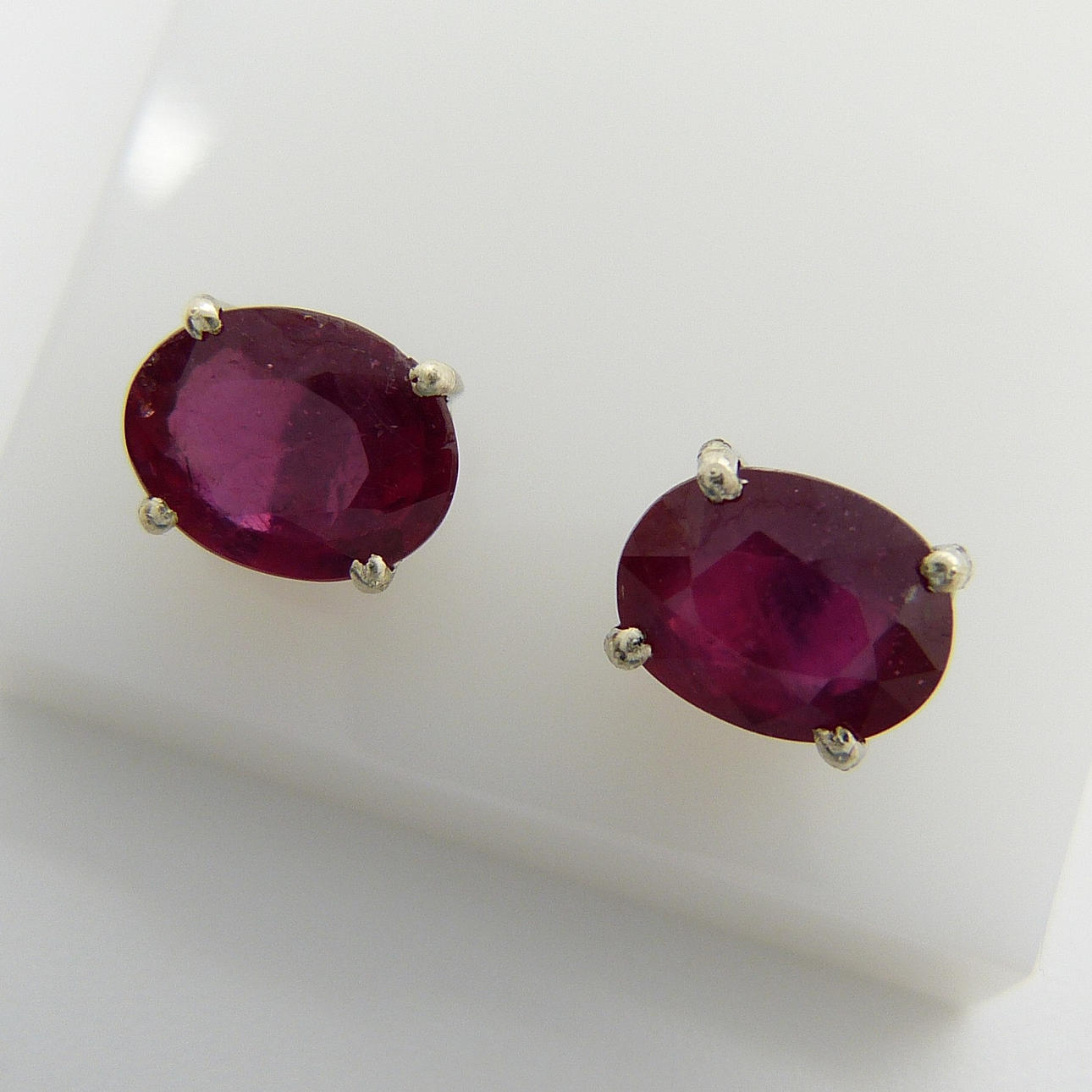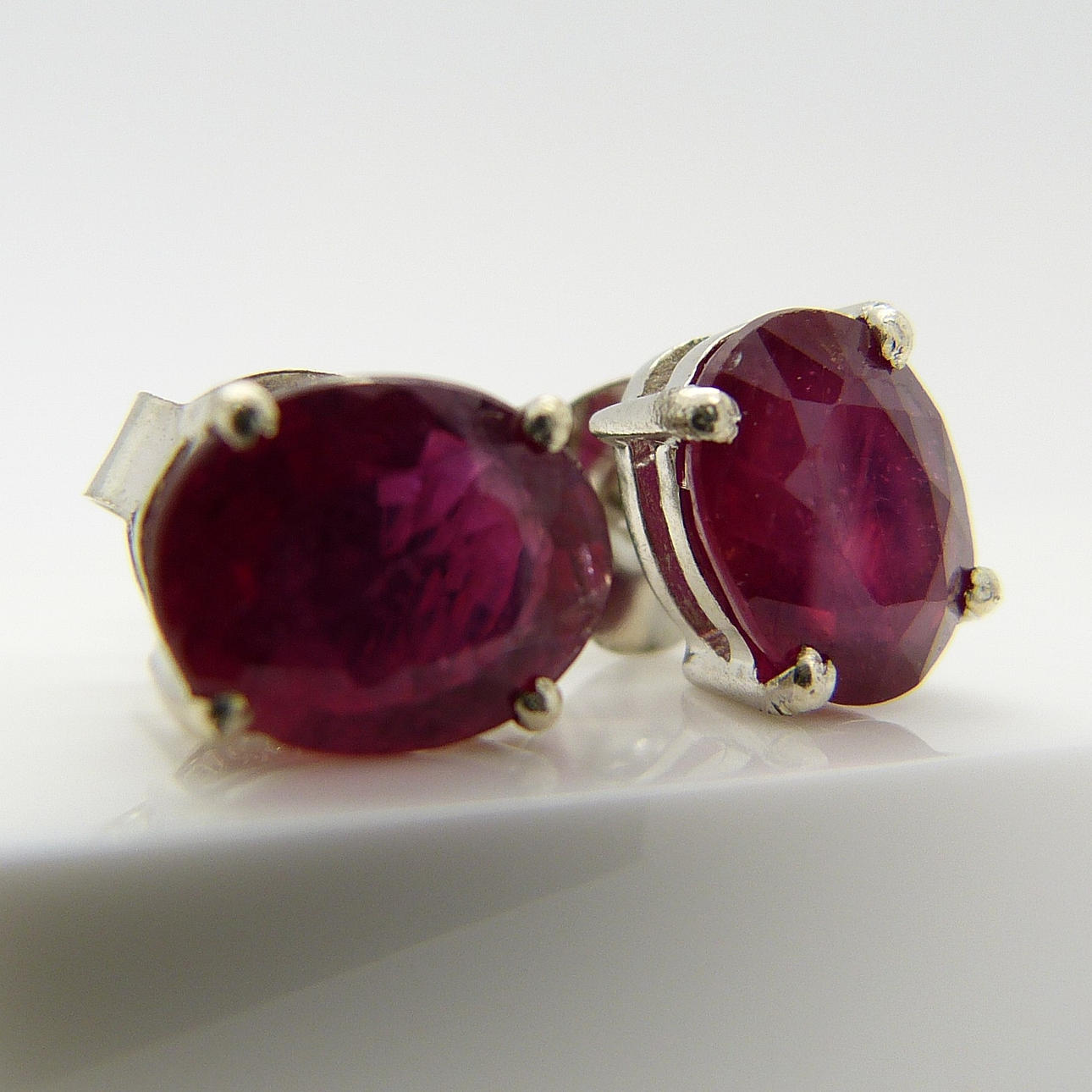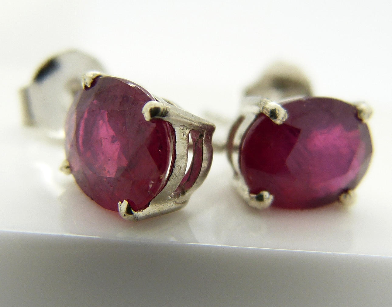 Varje tapp är inställd med en ovalslipad, behandlad röd rubin ädelsten som mäter 7½ x 6 mm, ca.