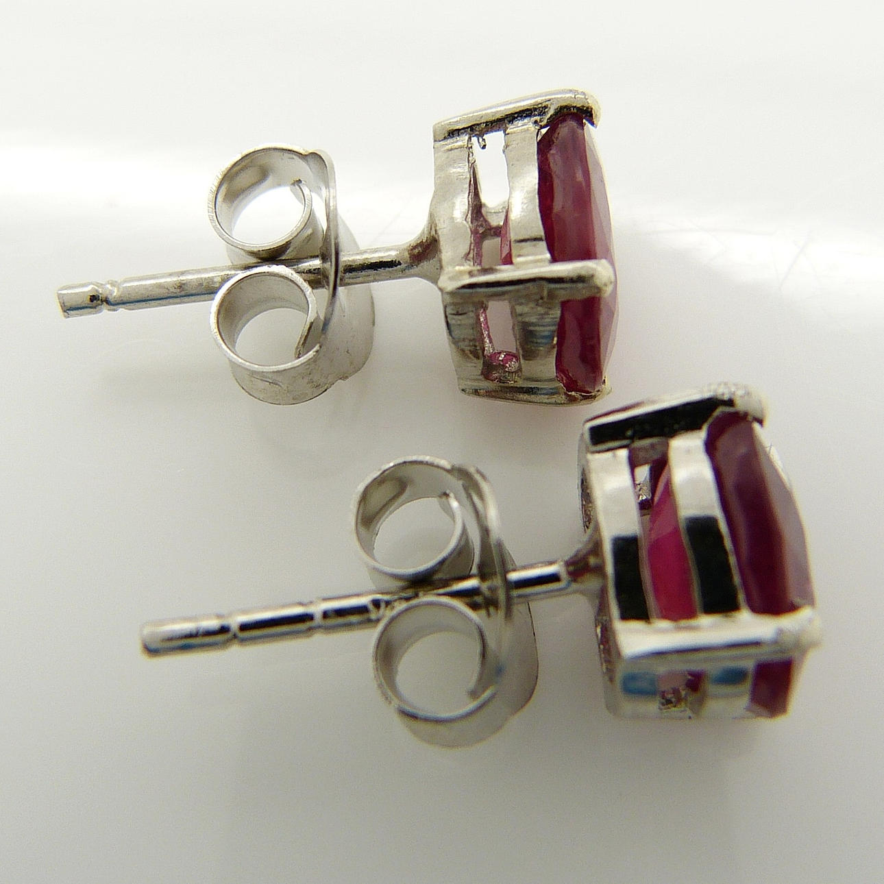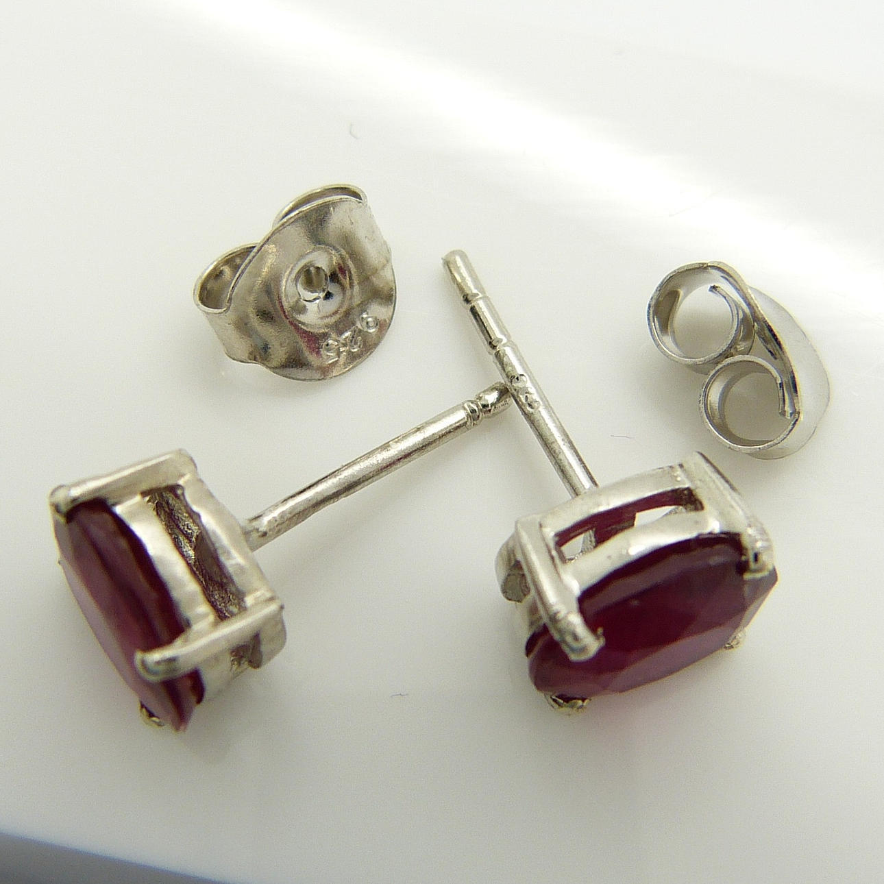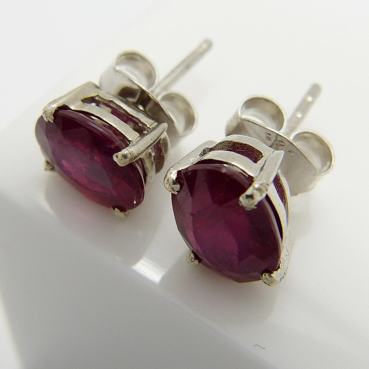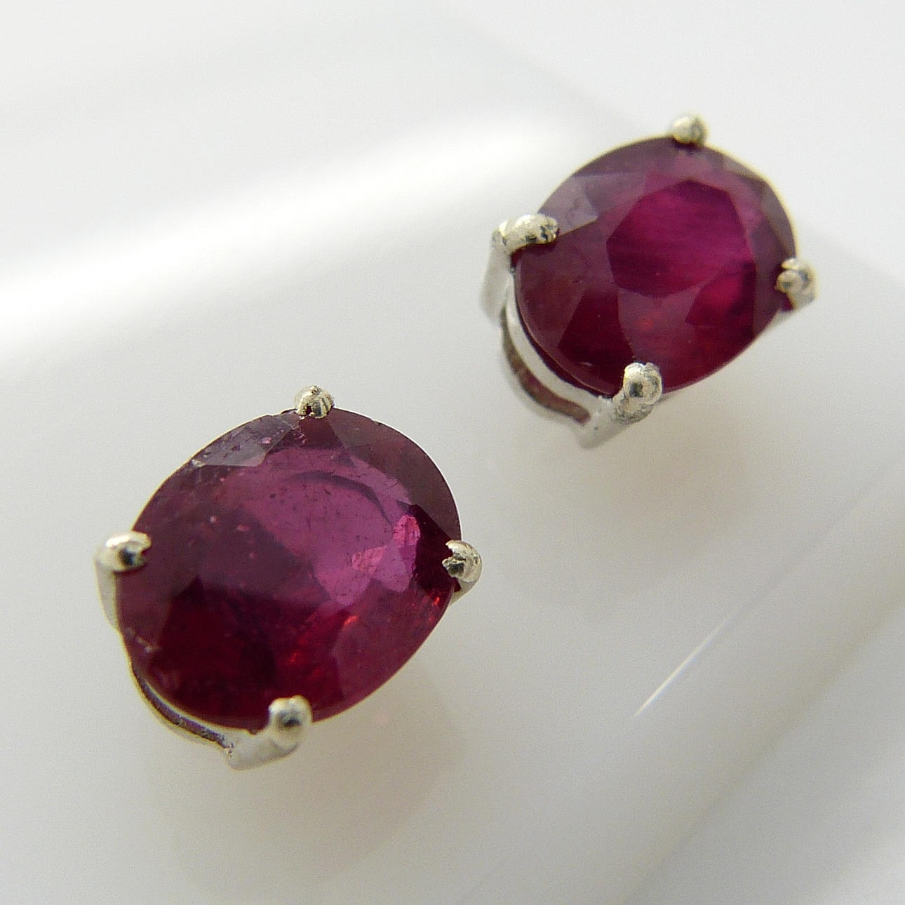 Varje tapp är inställd med en ovalslipad, behandlad röd rubin ädelsten som mäter 7½ x 6 mm, ca.