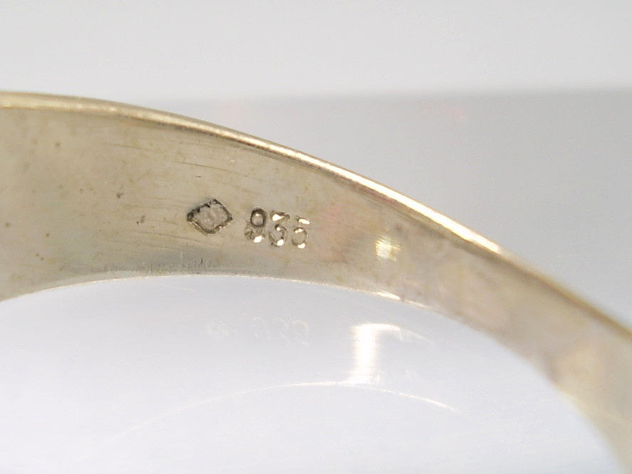 Ringen är tillverkad i 935 silver och stämplad.
