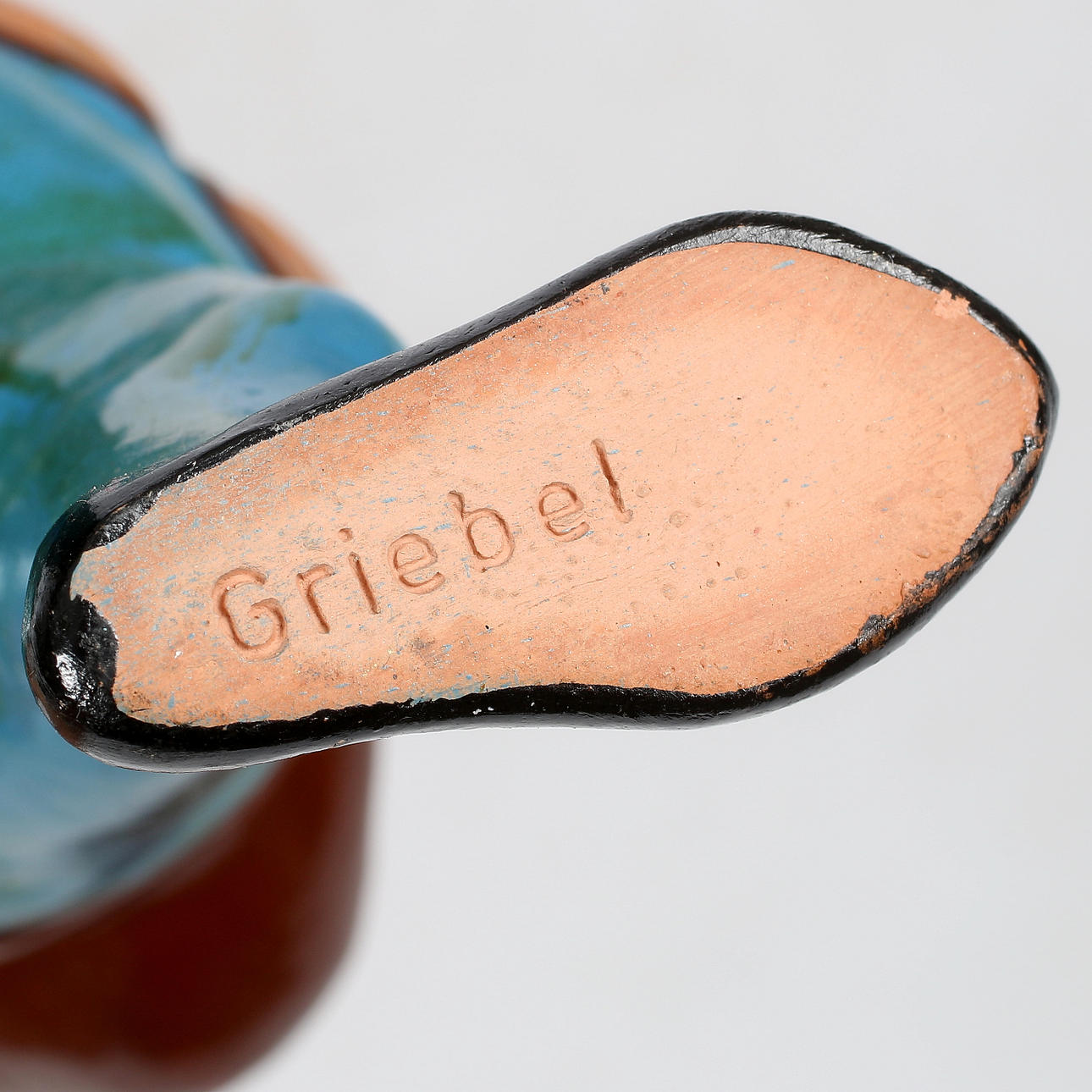 Bemålad terracotta. Djupstämplad.