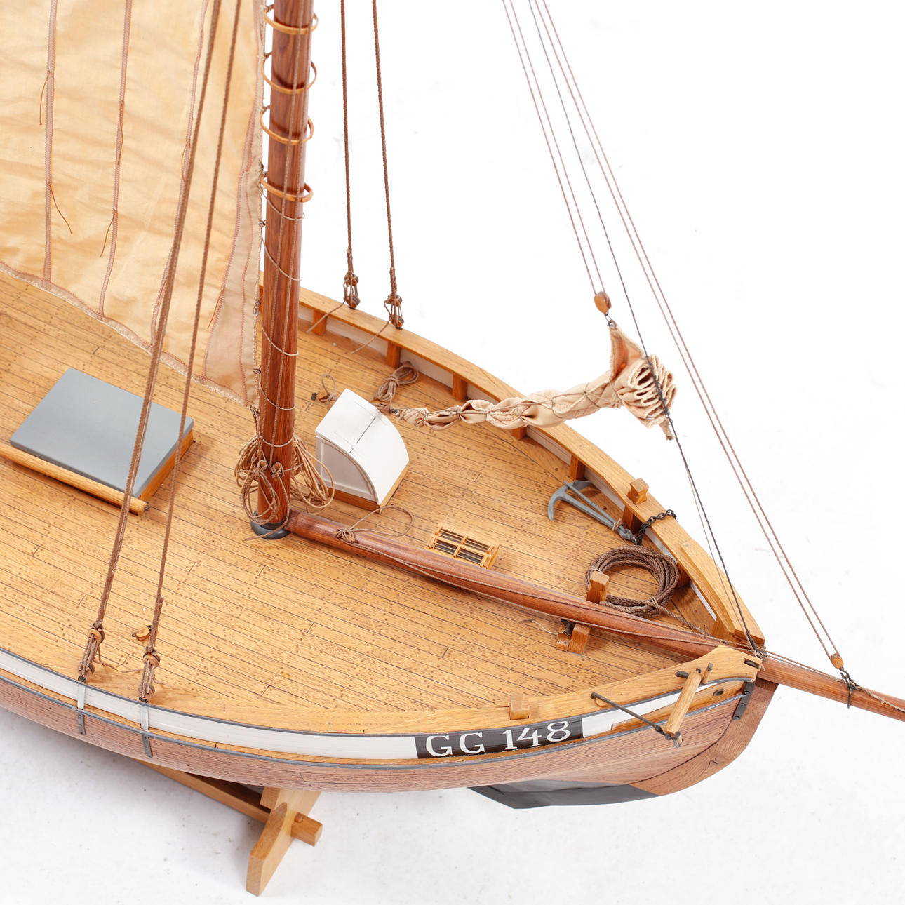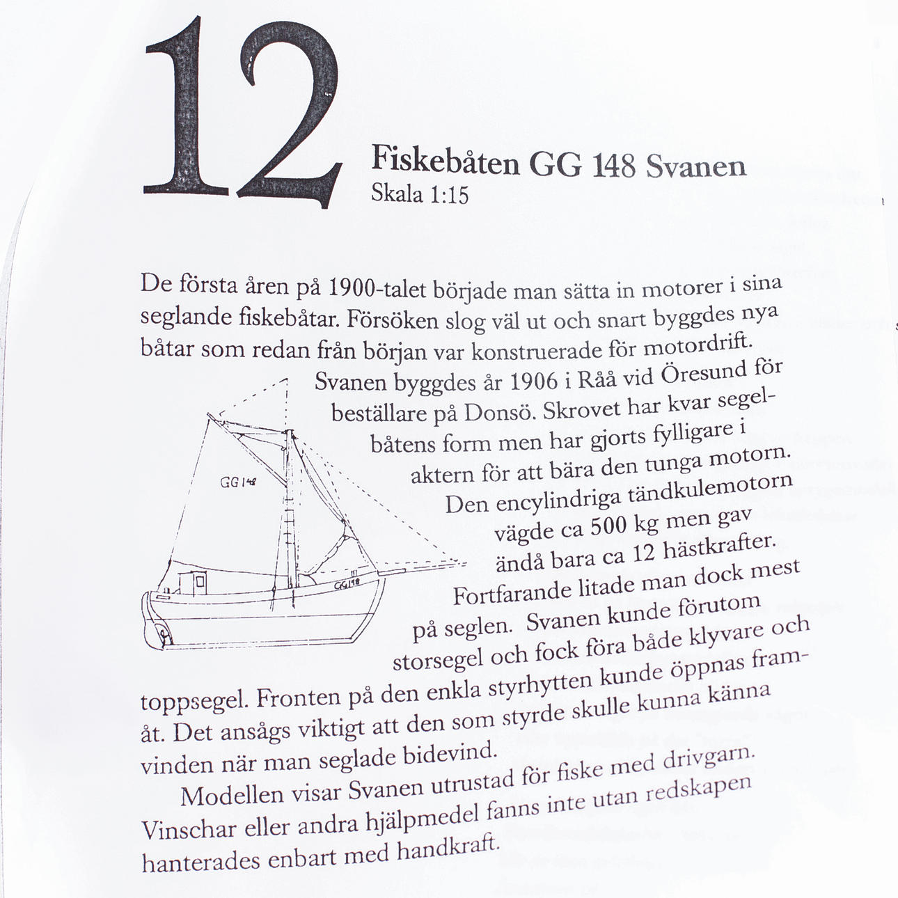 Fiskebåten GG 148 Svanen Donsö, skala 1:15, längd ca 100 cm, höjd ca 108 cm.