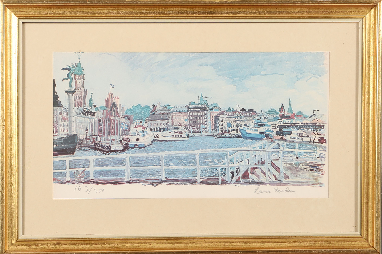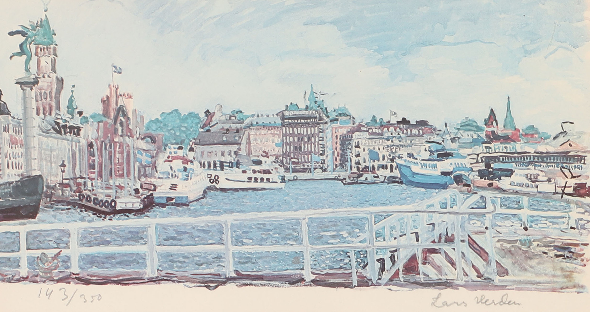 1485726. LARS HERDER. Helsingborgs hamn, konstnärstryck, signerad.