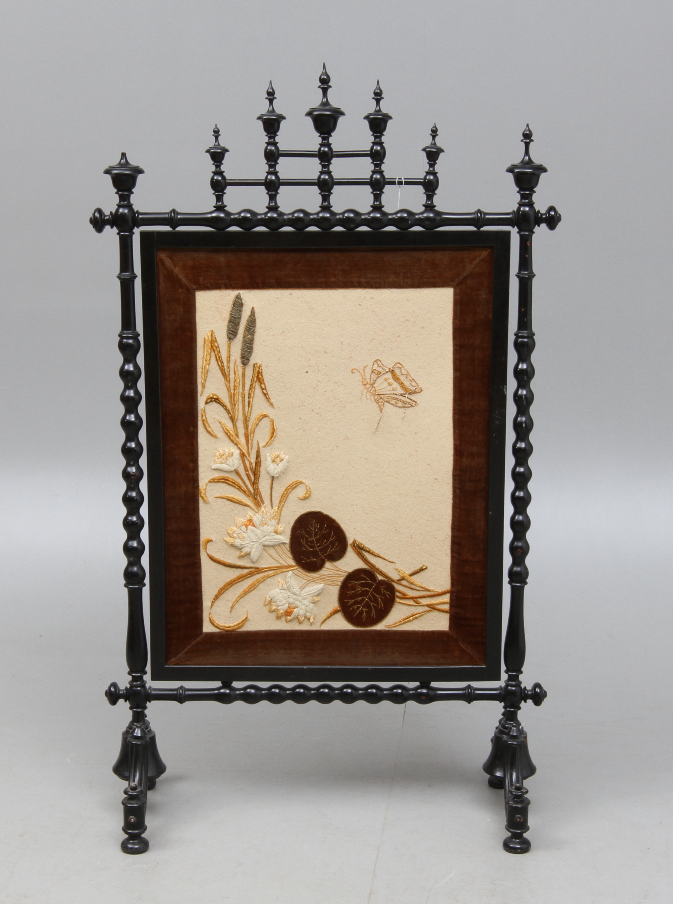 149005. ELDSKÄRM, trä samt textil, 1800-tal.