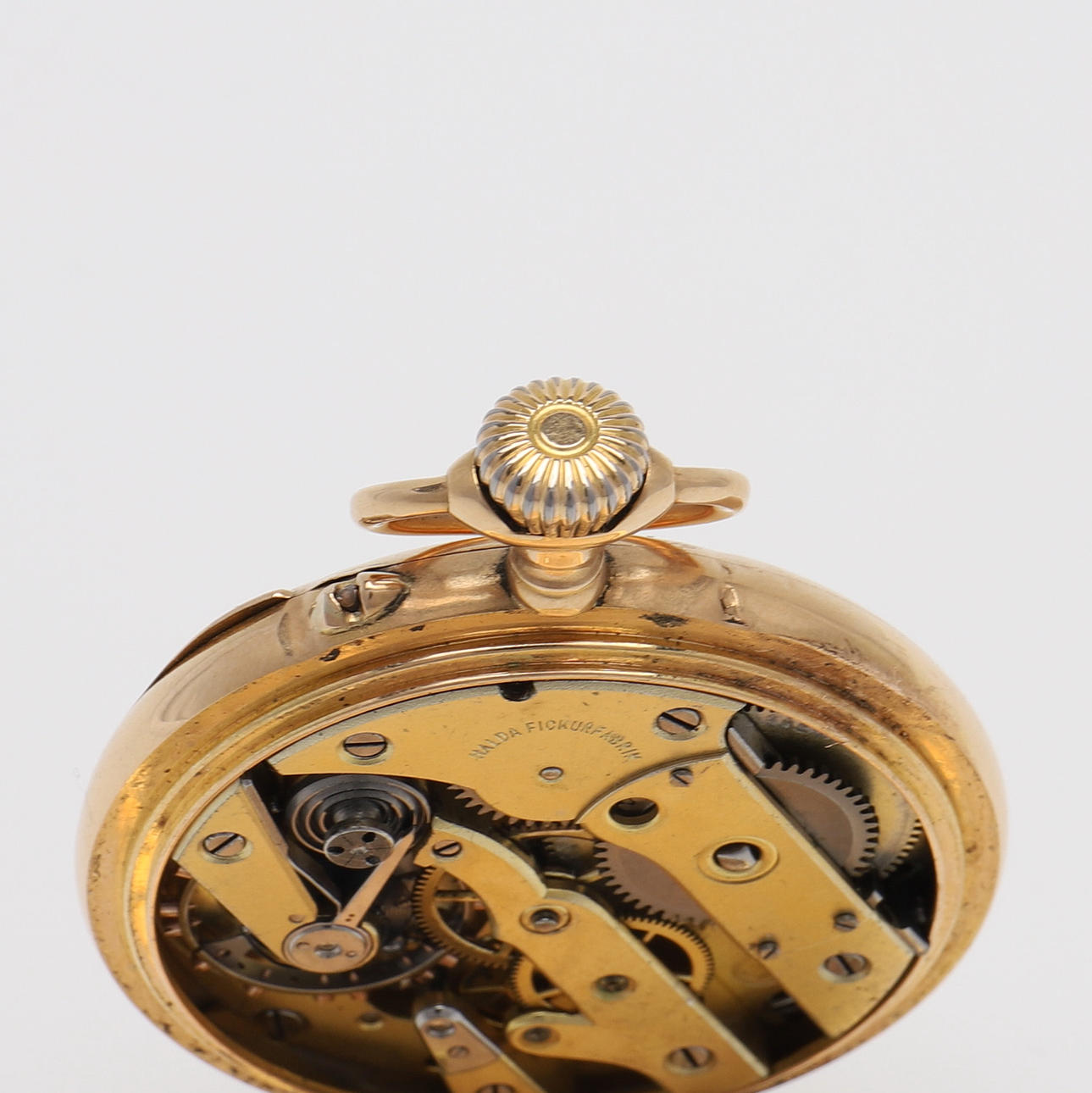 18k guld, 1906, med ankargång, serienummer 20217, v-verk, diameter 50 mm, vikt 95 gram, boett stämplad Henning Hammarlund, Karlshamn, etui.