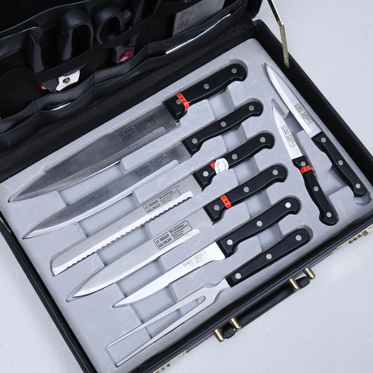 1494303. KNIVSET, AT Design, Solingen, i väska.