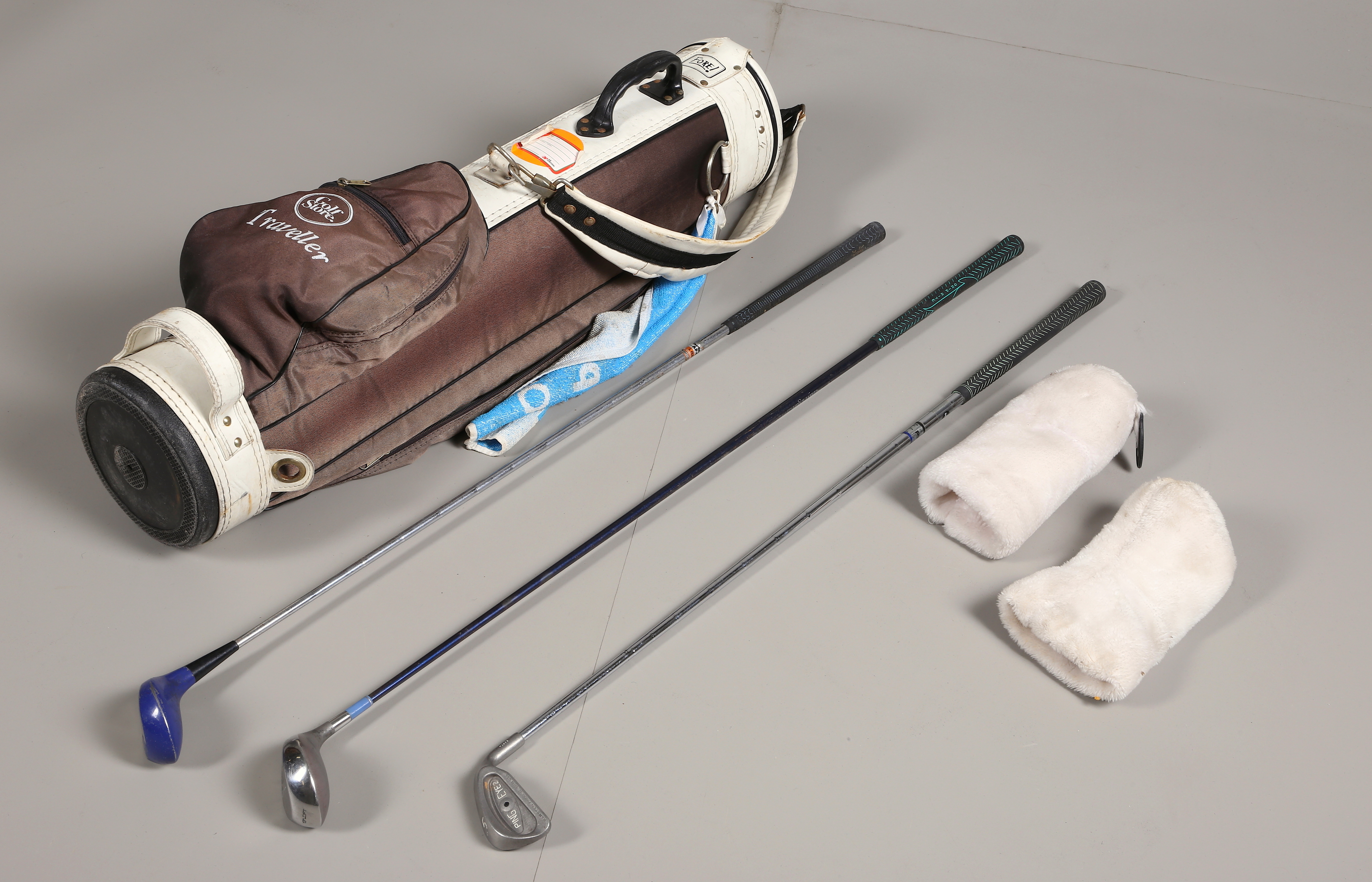 149982. GOLFBAG med tre klubbor, dam.