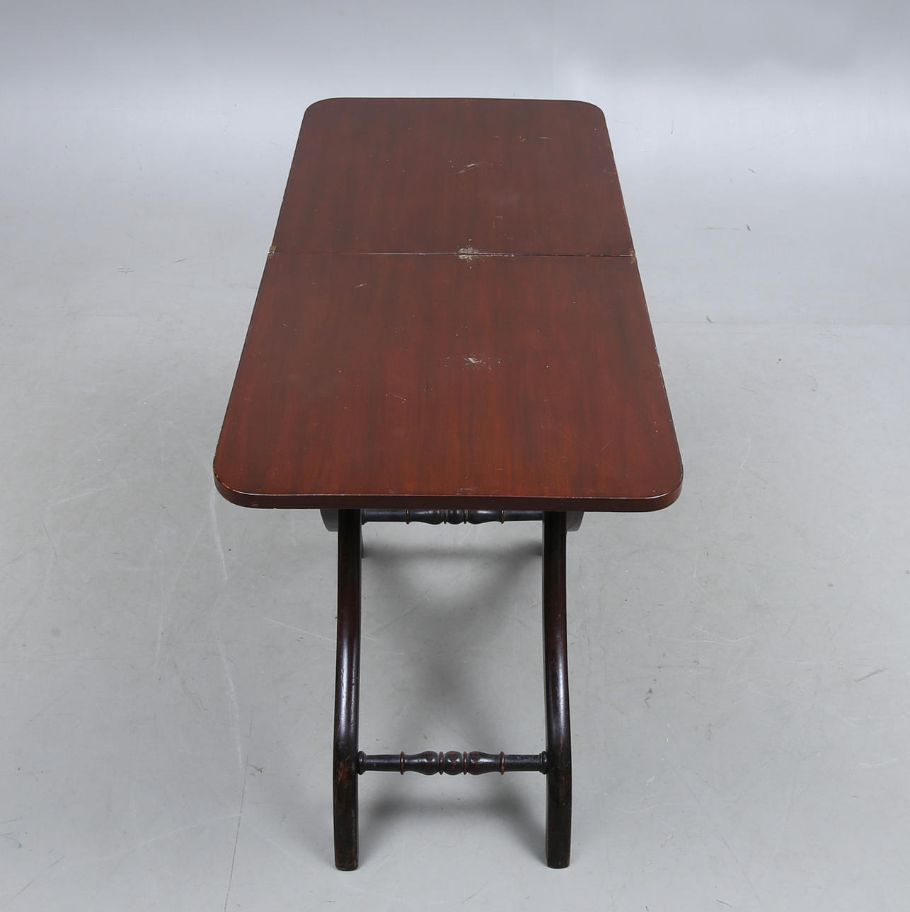 Skiva av mahogny. Längd 89, bredd 41,5, höjd 68 cm.