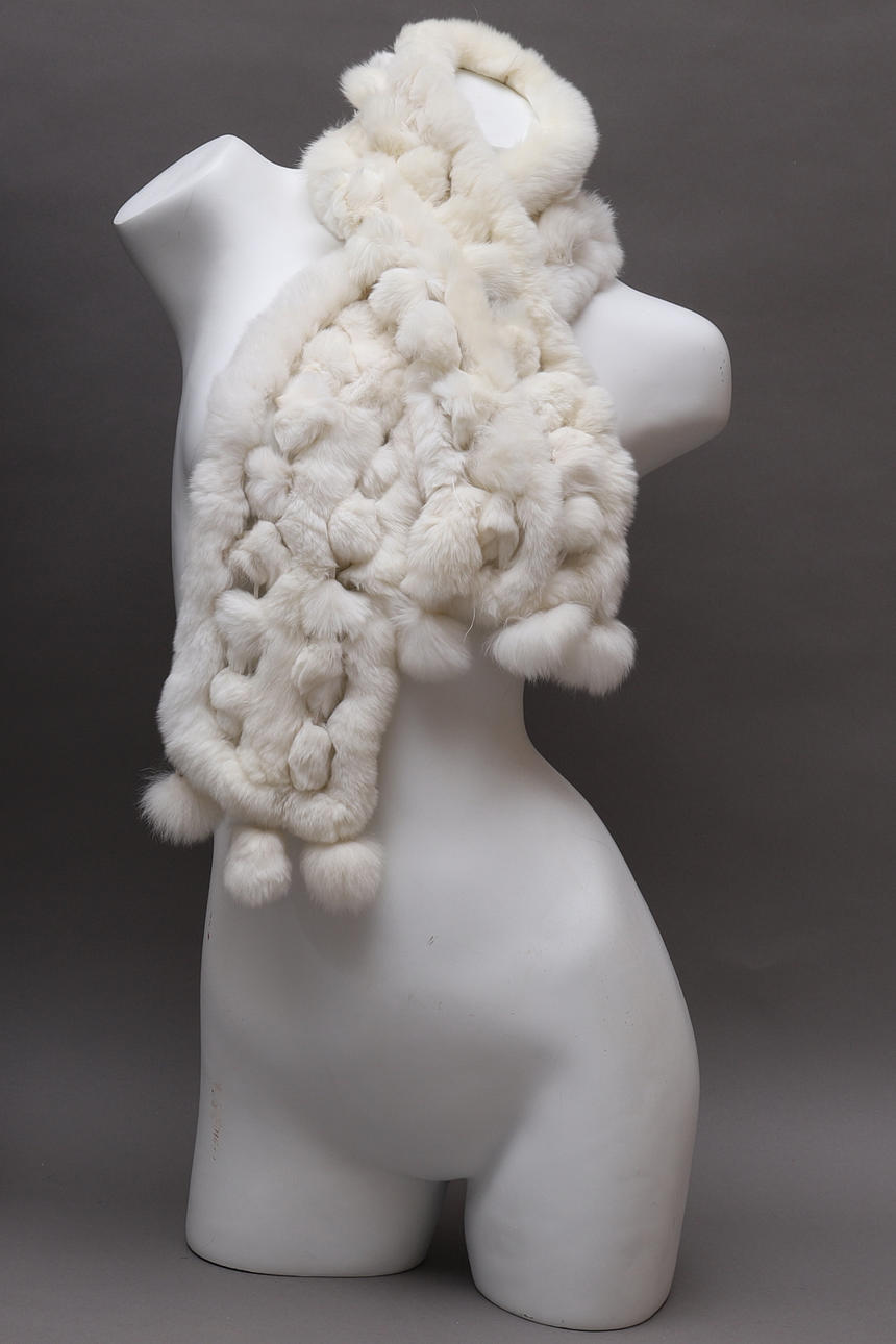 Halsduk, vit fluffig mjuk päls, möjligtvis kanin, längd ca 115 cm