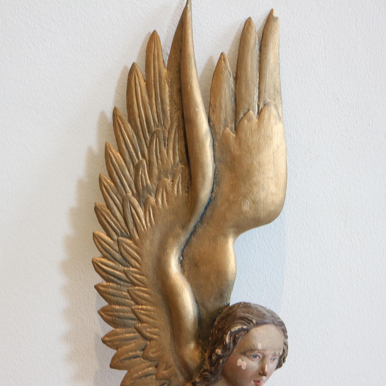 Ängelaltare, antik omkring 1860, snidat trä, mått: 63 x 19 cm.