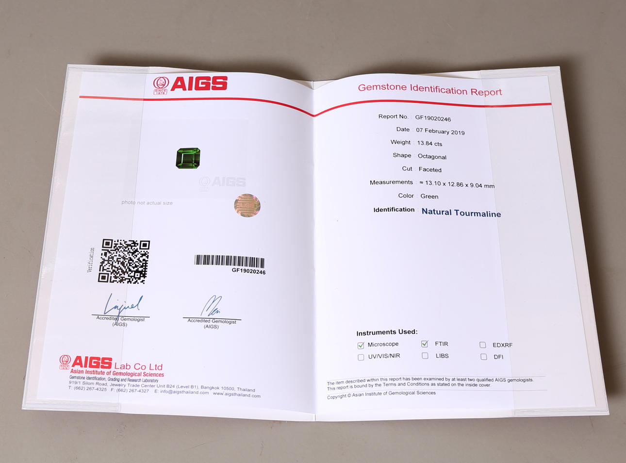 1515962. TURMALIN, grön, cirka 13,84ct.