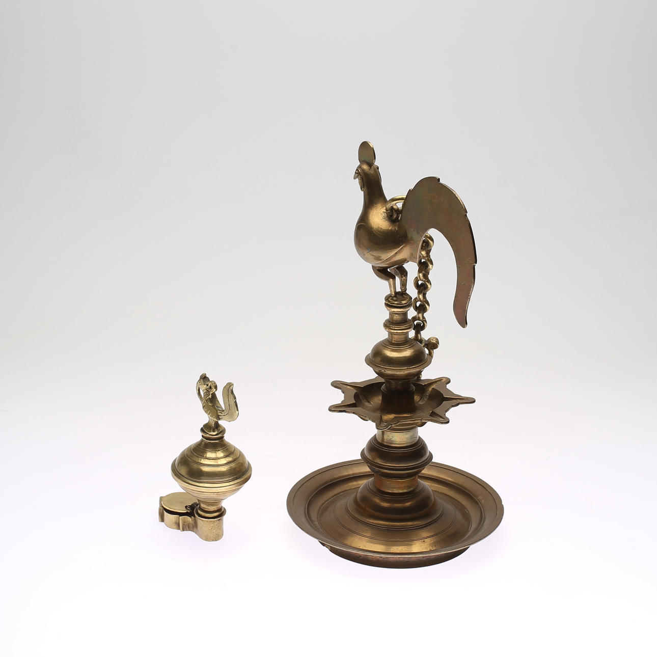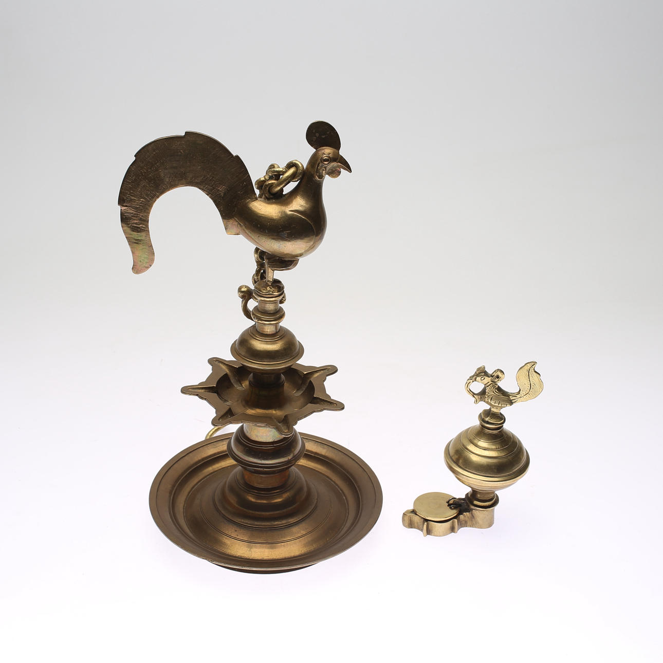 Med dekor av tuppar. Höjd ca 18-39 cm.
