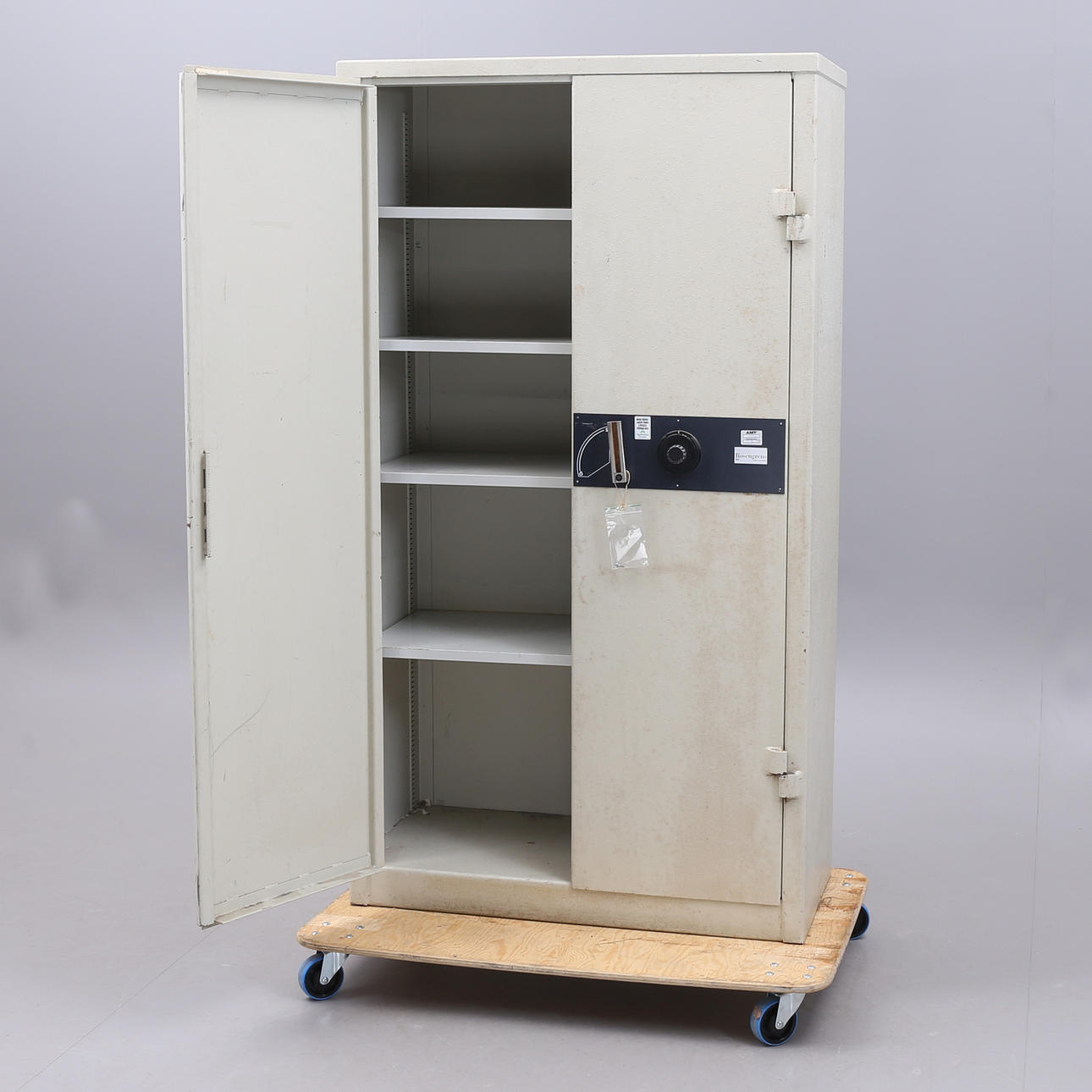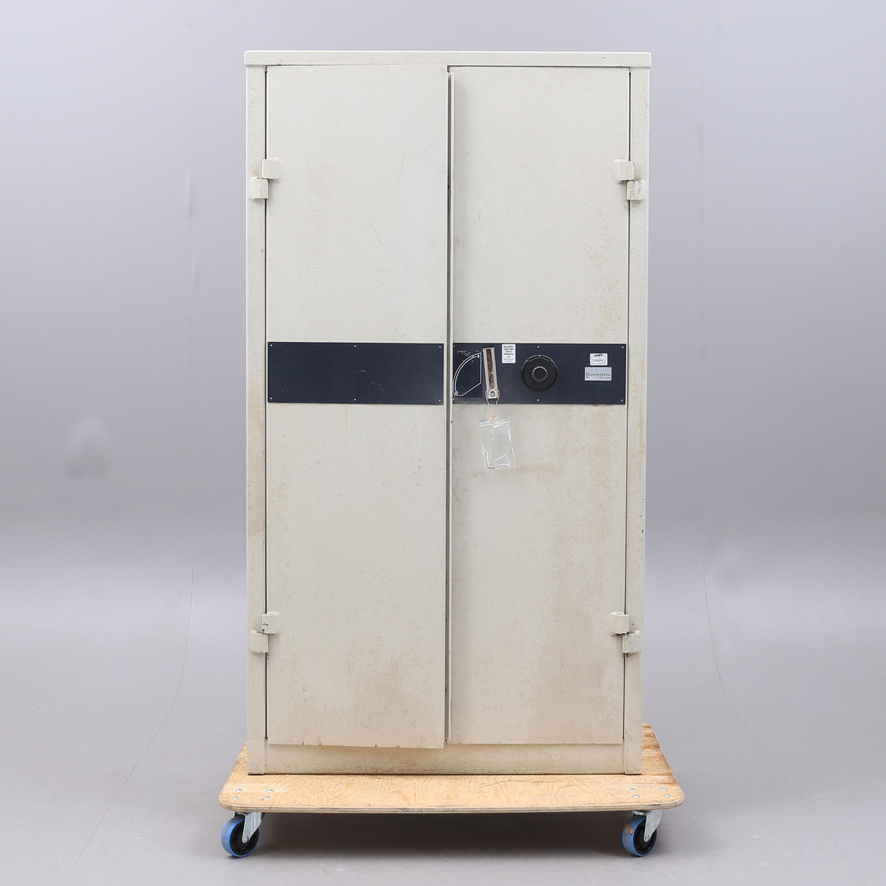 Ej funktionstestat. Ingen funktionsgaranti lämnas. Eventuell nyckel för inställning av kod på insidan av skåpet saknas.