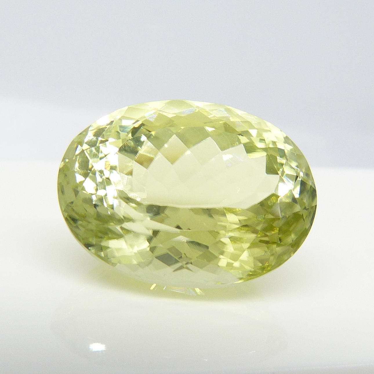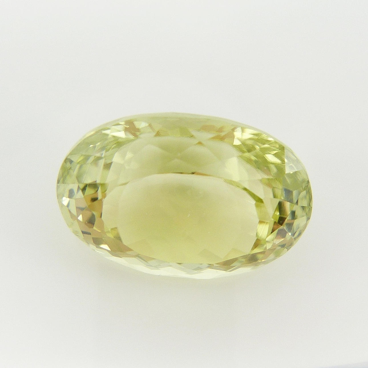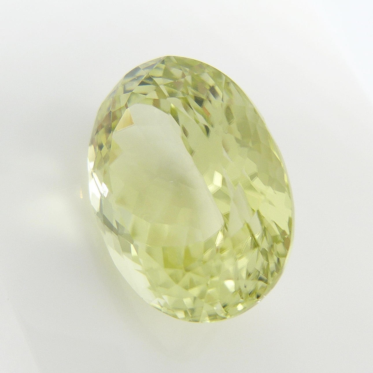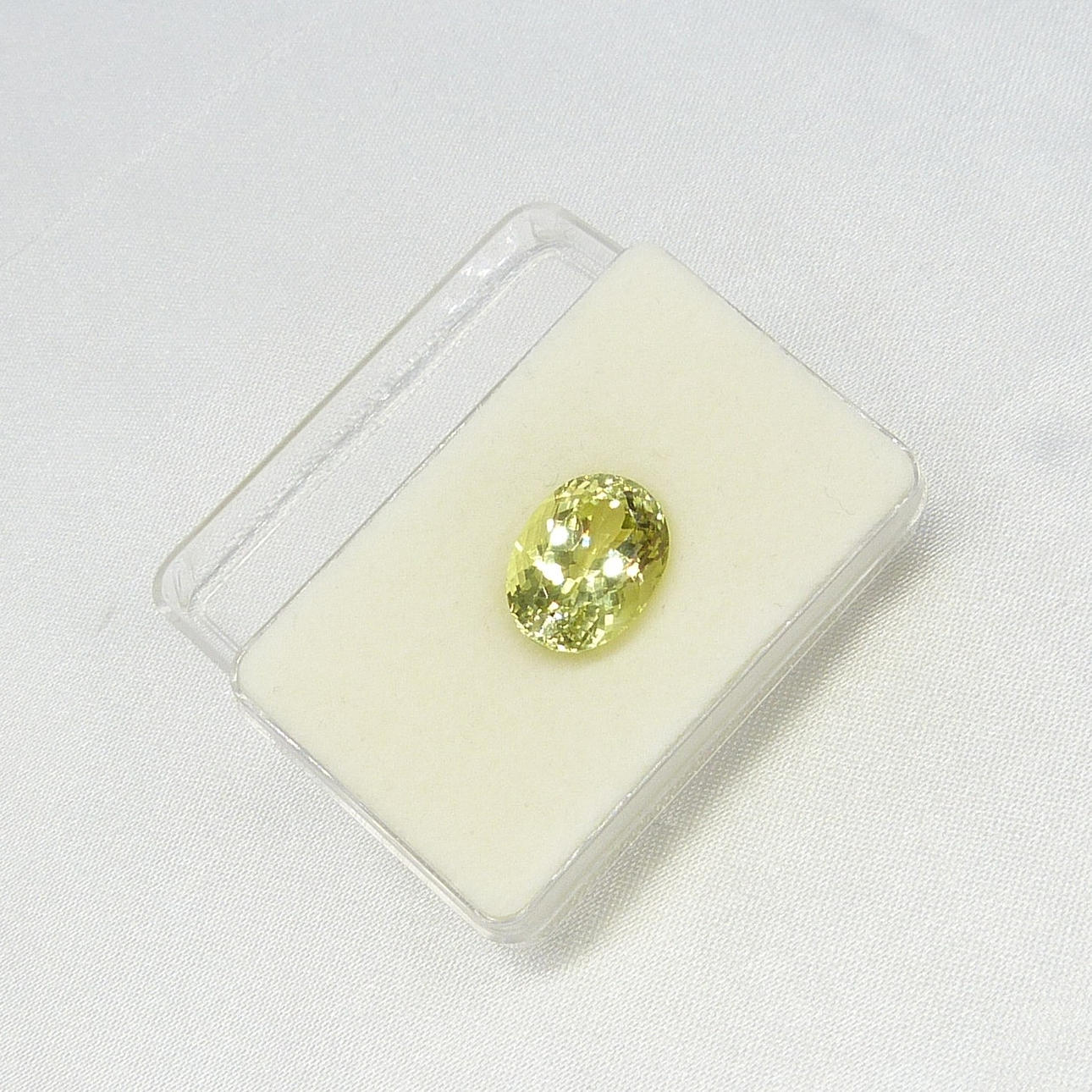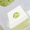 En certifierad stor, ovanlig mångfacetterad limegul oval Sillimanite mineral ädelsten, med en karatvikt av 13,11 ct, boxad.