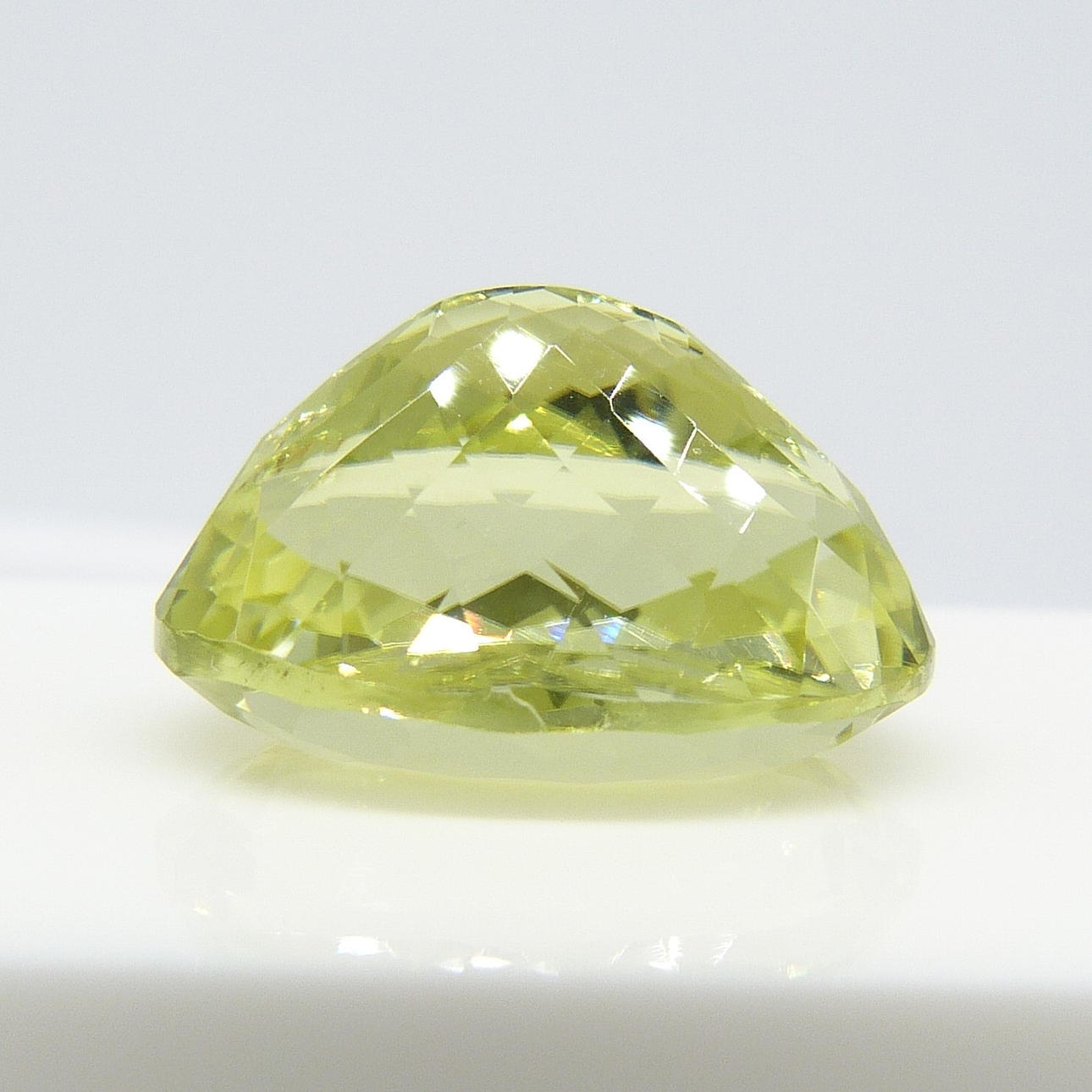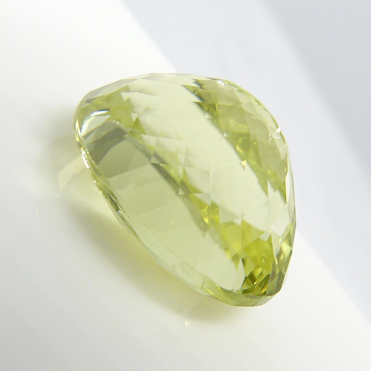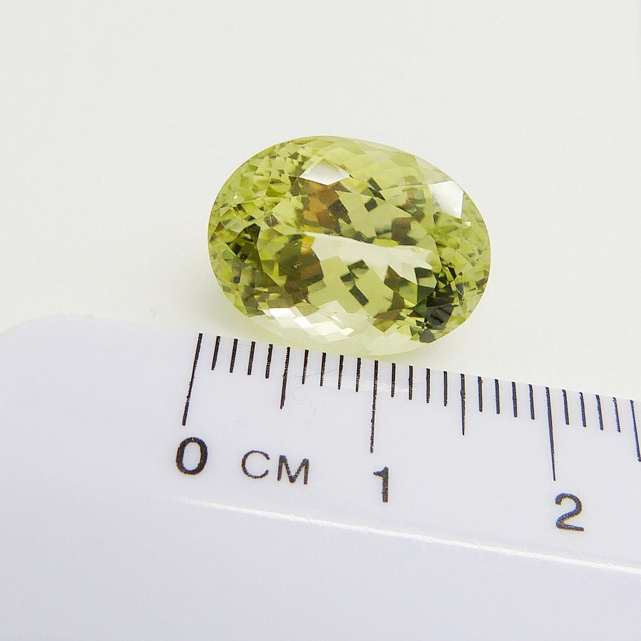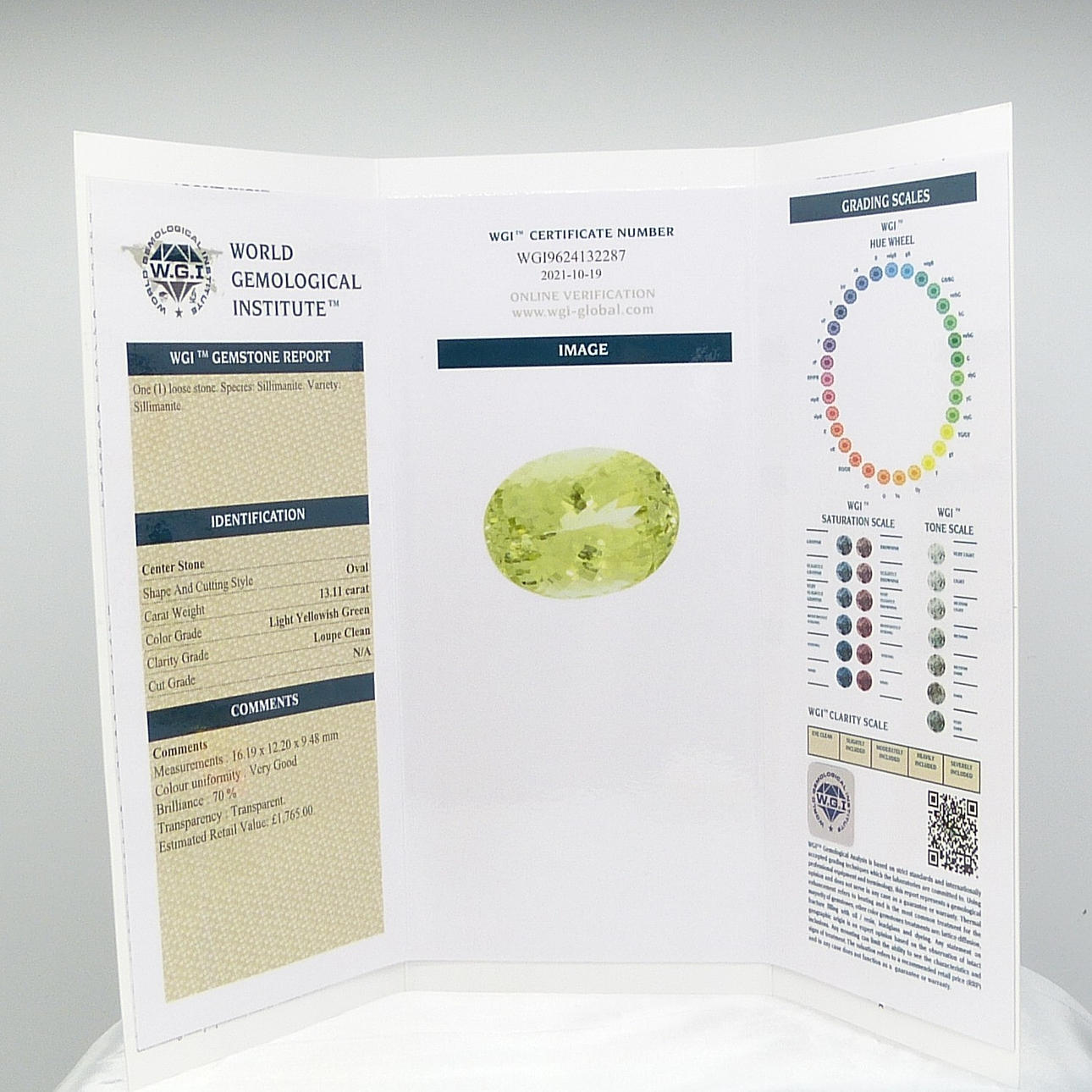 En certifierad stor, ovanlig mångfacetterad limegul oval Sillimanite mineral ädelsten, med en karatvikt av 13,11 ct, boxad.
