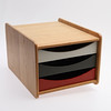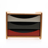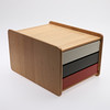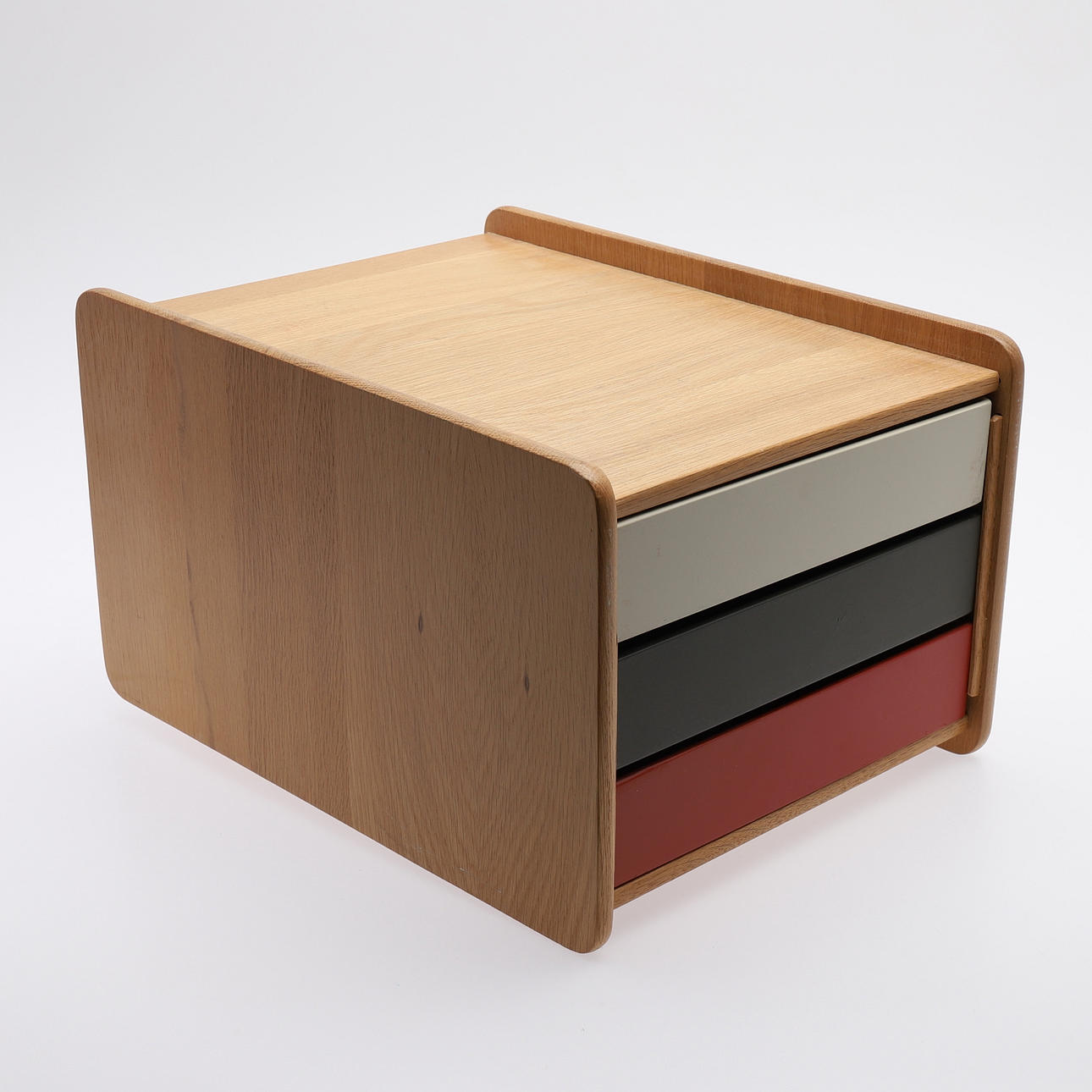 Ek, med tre lådor lackerade i olika färger, 36x27x21 cm.