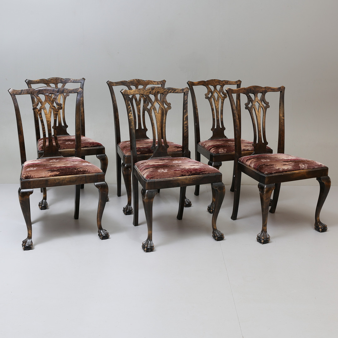 1528287. BORD o 6 STOLAR, Chippendale, 30 tal.