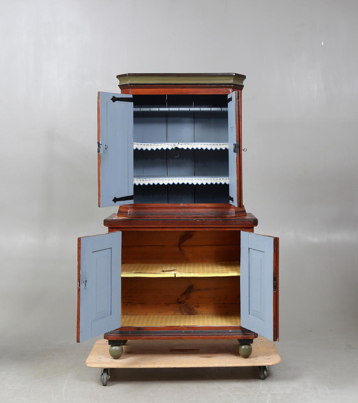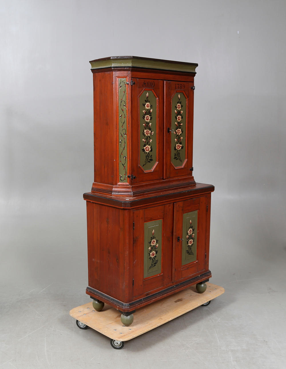 2 delat, bemålat, dekor med rosor, längd ca. 94, bredd 43, höjd 177 cm.