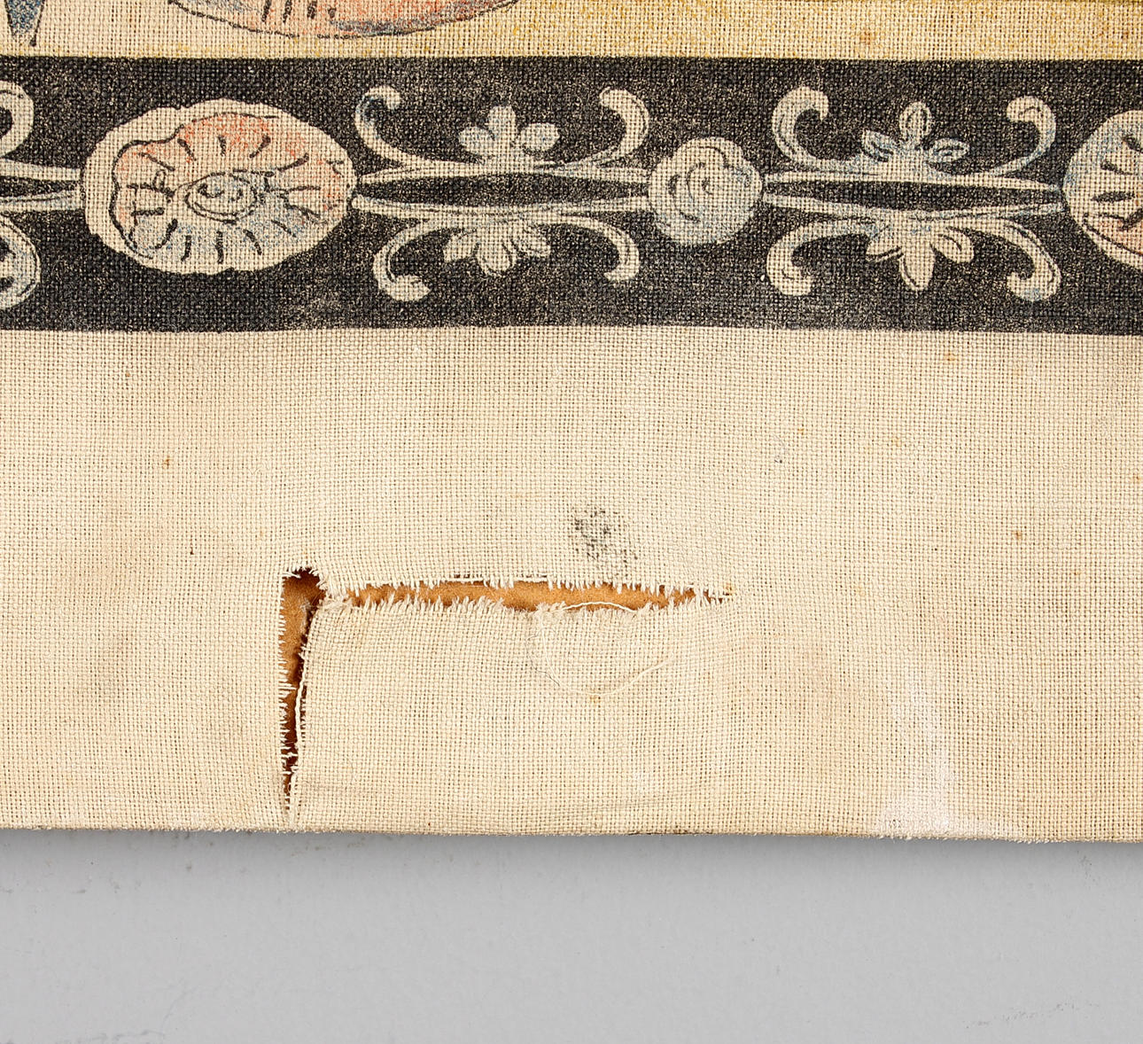 Handtryck på väv, delvis handklorerad, 1900-tal. 54x102cm.