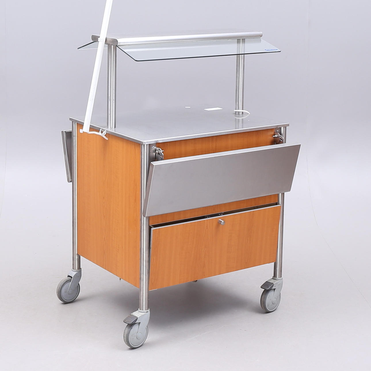Serveringshöjd 90 cm, total högsta höjd 131 cm, bredd ca 117 cm/115 cm/90 cm, längd 120 cm/80 cm/80 cm (en brickhållare saknas på en vagn).