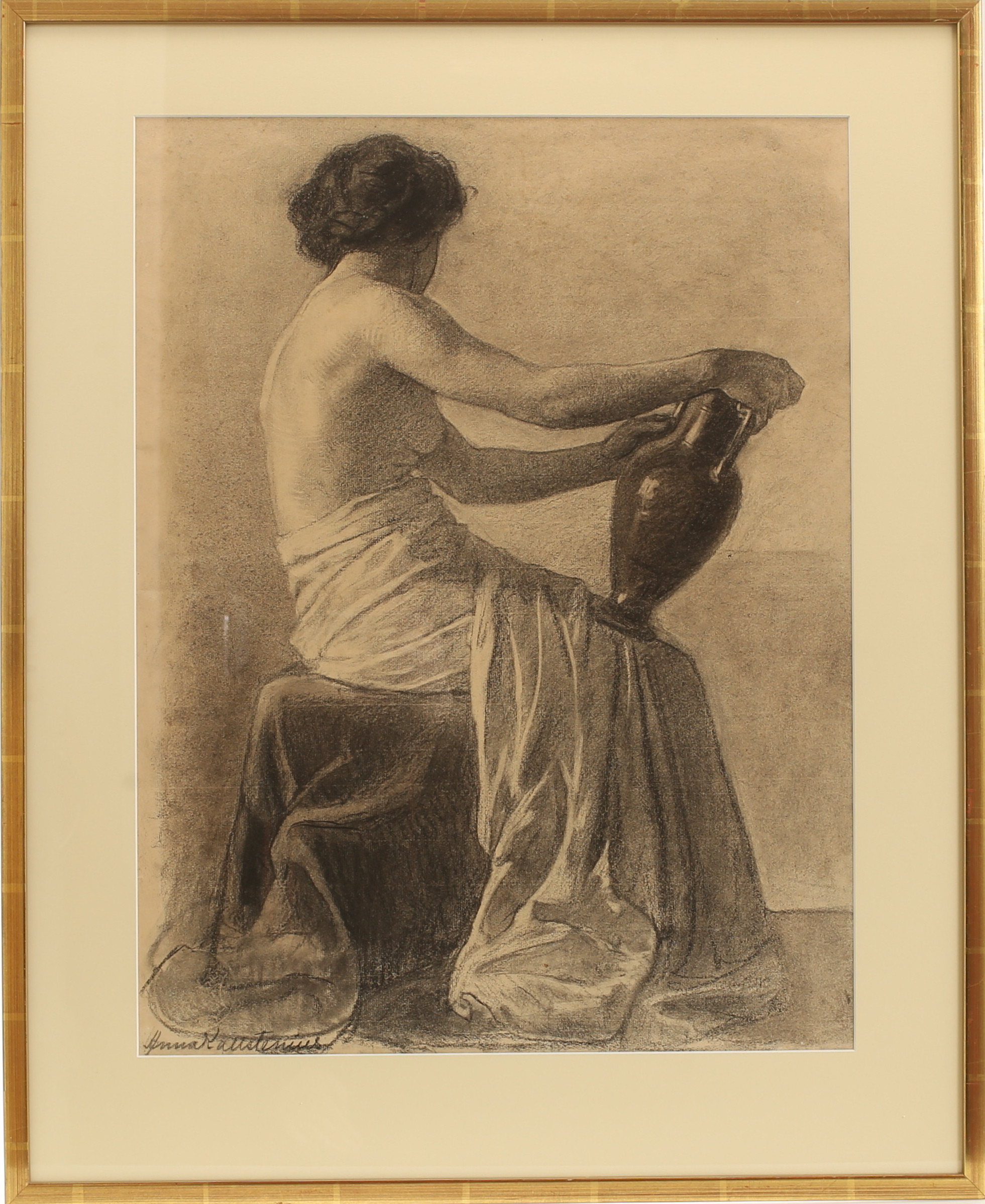 1536916. ANNA KALLSTENIUS. Teckning, krita, signerad.