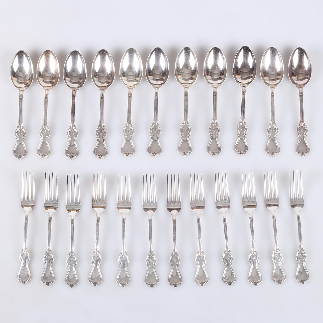 1538993. BESTICK, silver, modell "Olga", 59 delar.