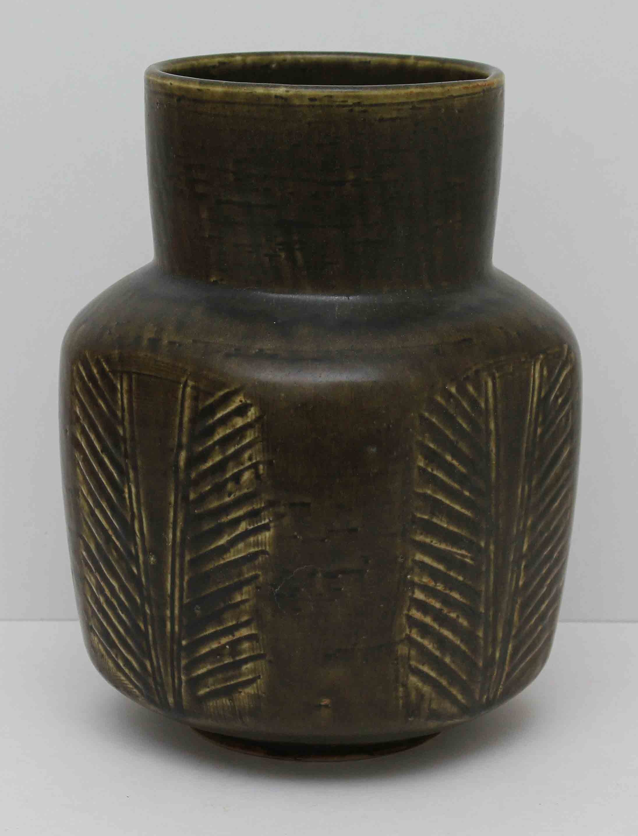 15392. EVA STAER NIELSEN. Vas, stengods, Monogramsignerad E.St.N, Saxbo, Danmark.