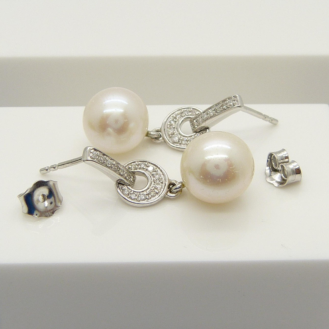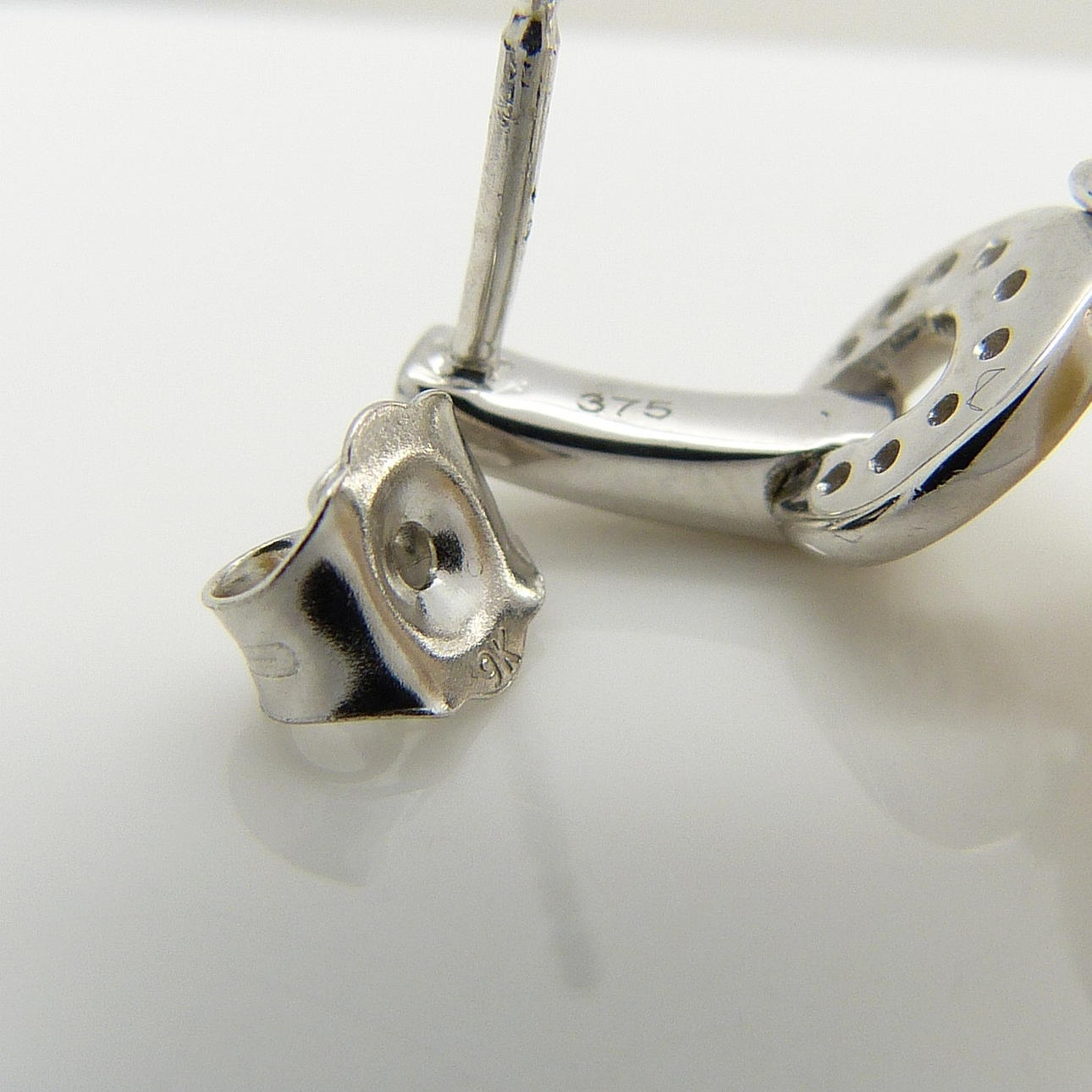 Dessa örhängen är 9ct vitguld (testad och stämplad ”375" och ”9k”).