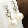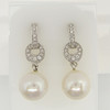 Varje örhänge i detta par är inställd med 16 rundslipade diamanter och en enda upphängd odlad pärla med 8mm diameter, ca.