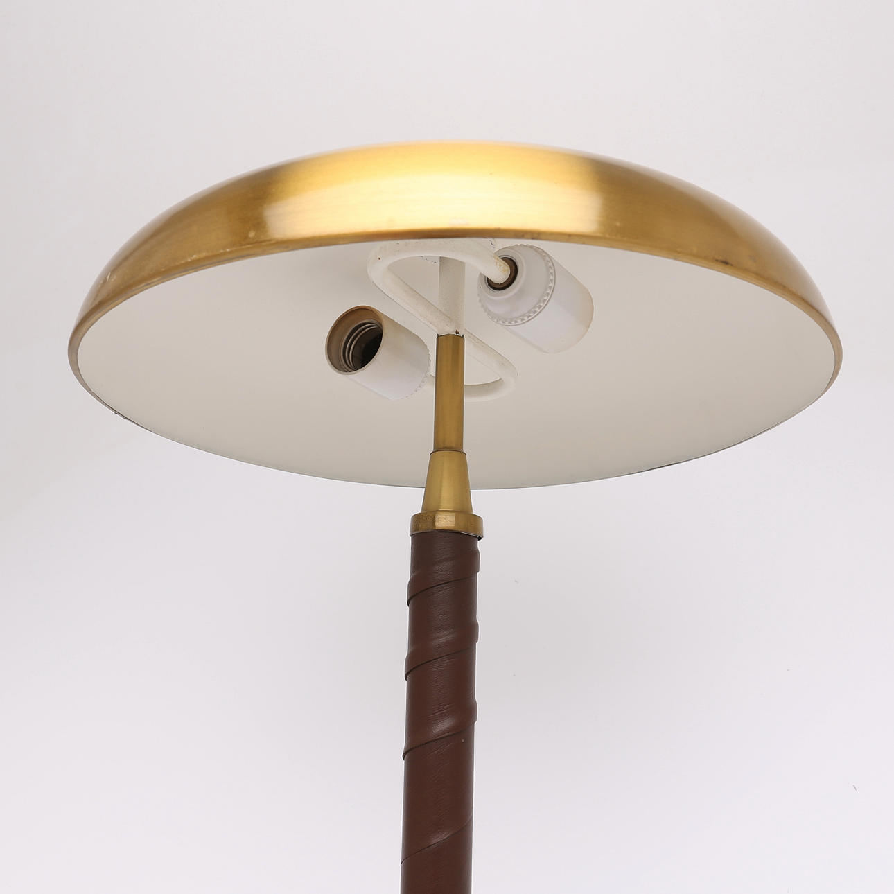 Bordslampa av mässing med ben lindat med läder.