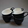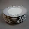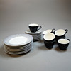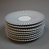 8 koppar med fat och assietter . Koppens höjd 7 cm, assiettens diameter 22,5 cm.