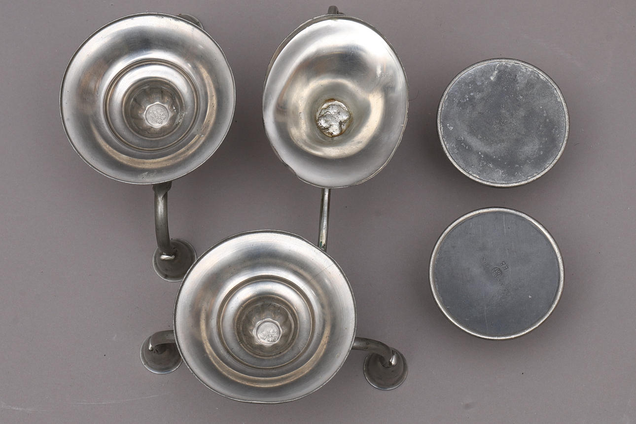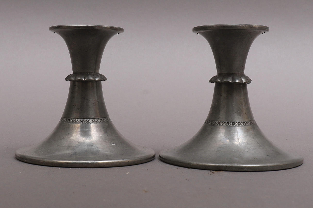 Ett par ljusstakar, otydlig stämpel, E8 (1931), ca 8.5 cm höga.