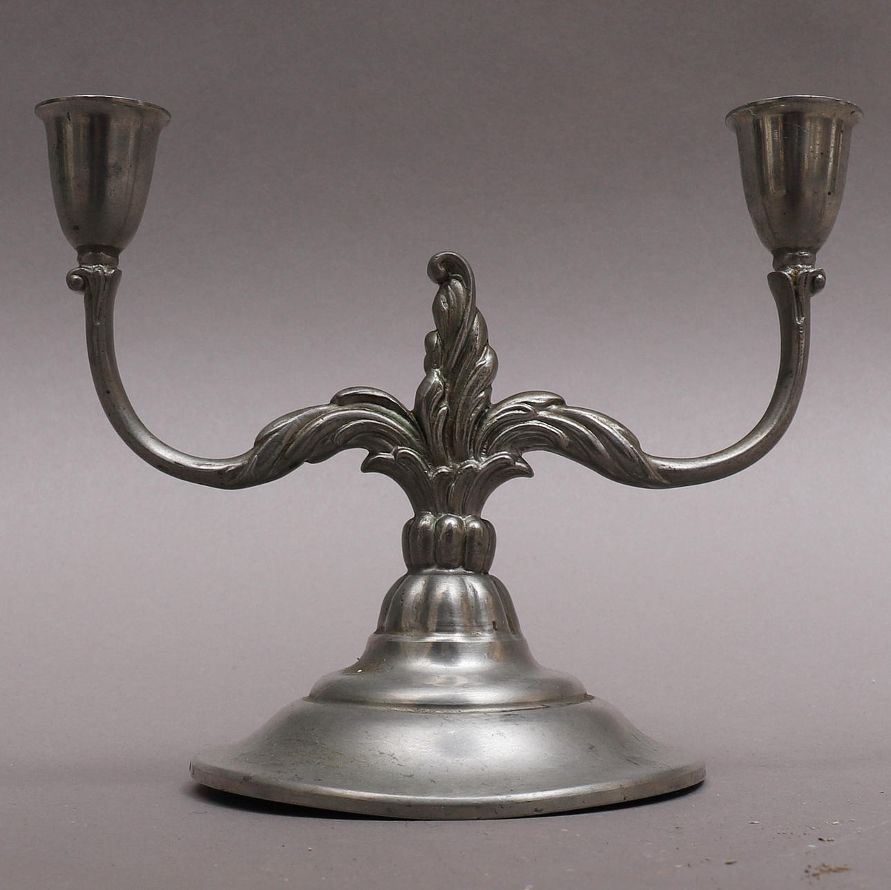 Ljusstake, tvåarmad, ca 20.5 cm bred.