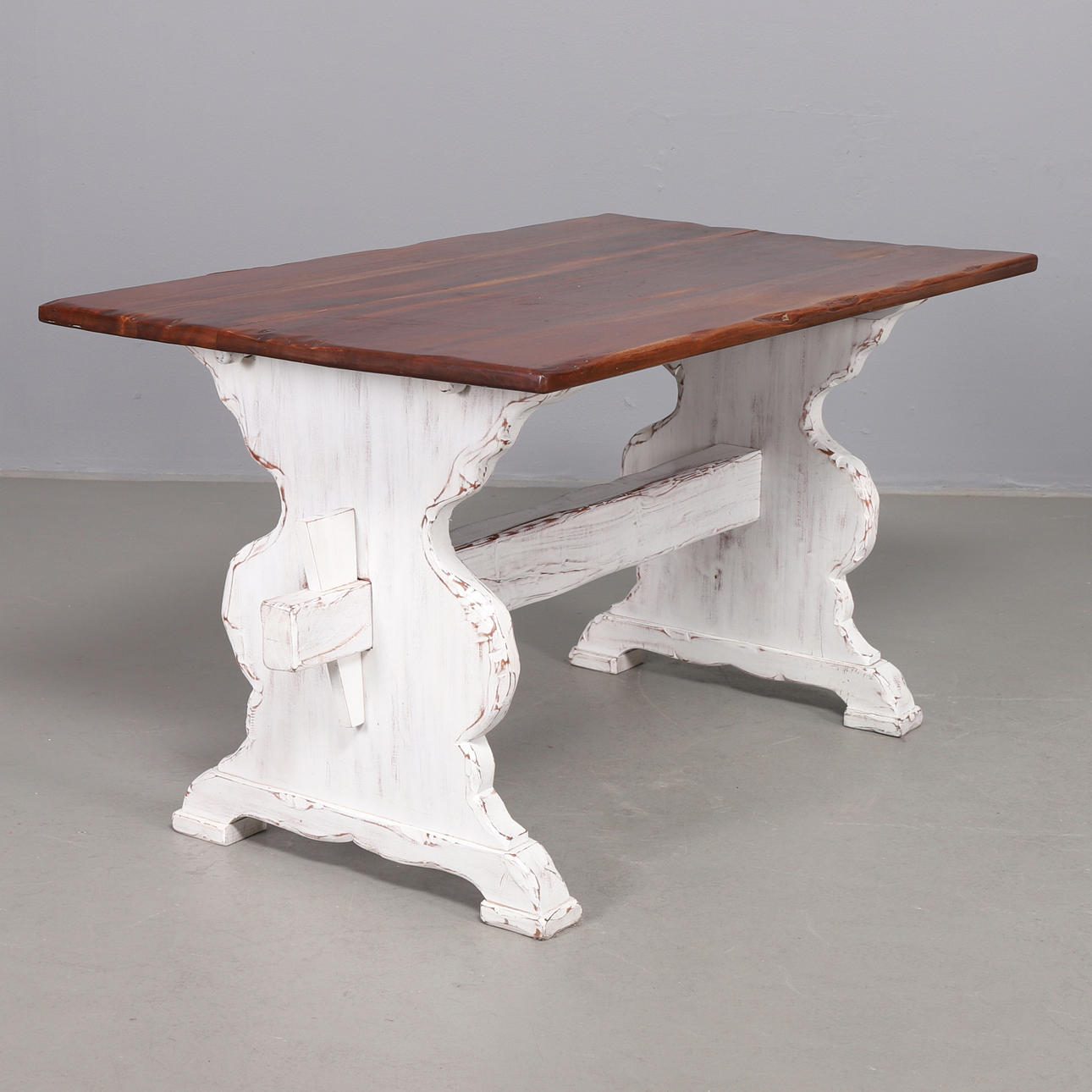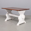 Bockbord på bemålad benställning. Mått: 132 x 82 cm, höjd 75 cm.