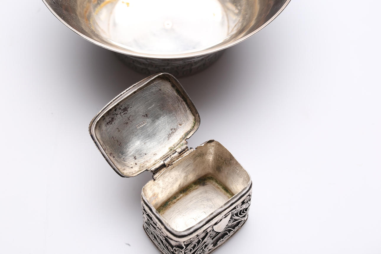 SKÅL OCH DOSOR, 7 delar, bl.a silver.