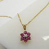 Claw-set i hänget är 6 röda rubin ädelstenar arrangerade som kronblad. Rubiner total karatvikt: 0.30 ct, ca.