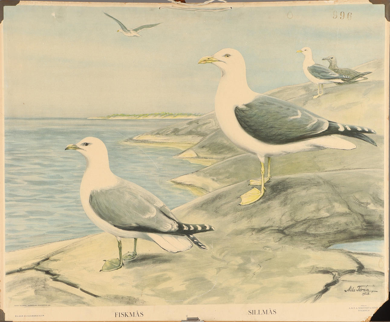 1556435. SKOLPLANSCHER, 2 stycken, fåglar.