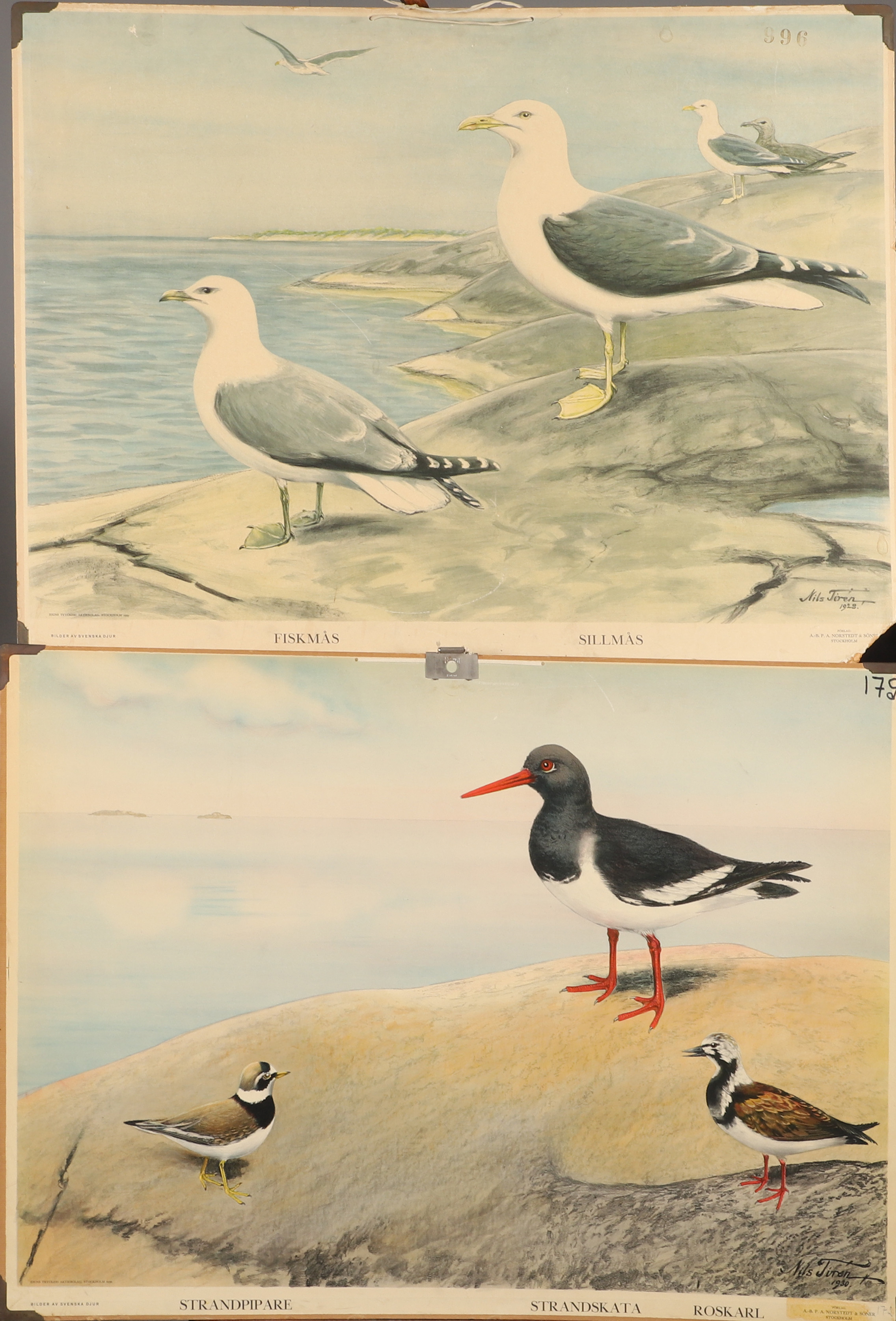 1556435. SKOLPLANSCHER, 2 stycken, fåglar.