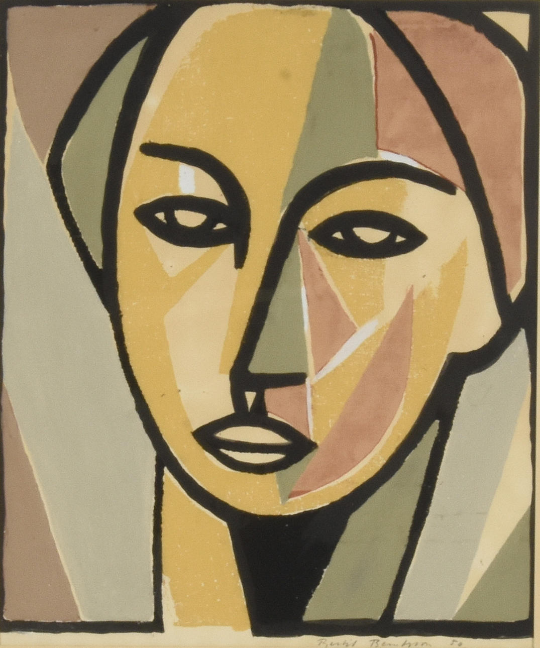 Ansikte, signerad och daterad 50, 54x36 cm.