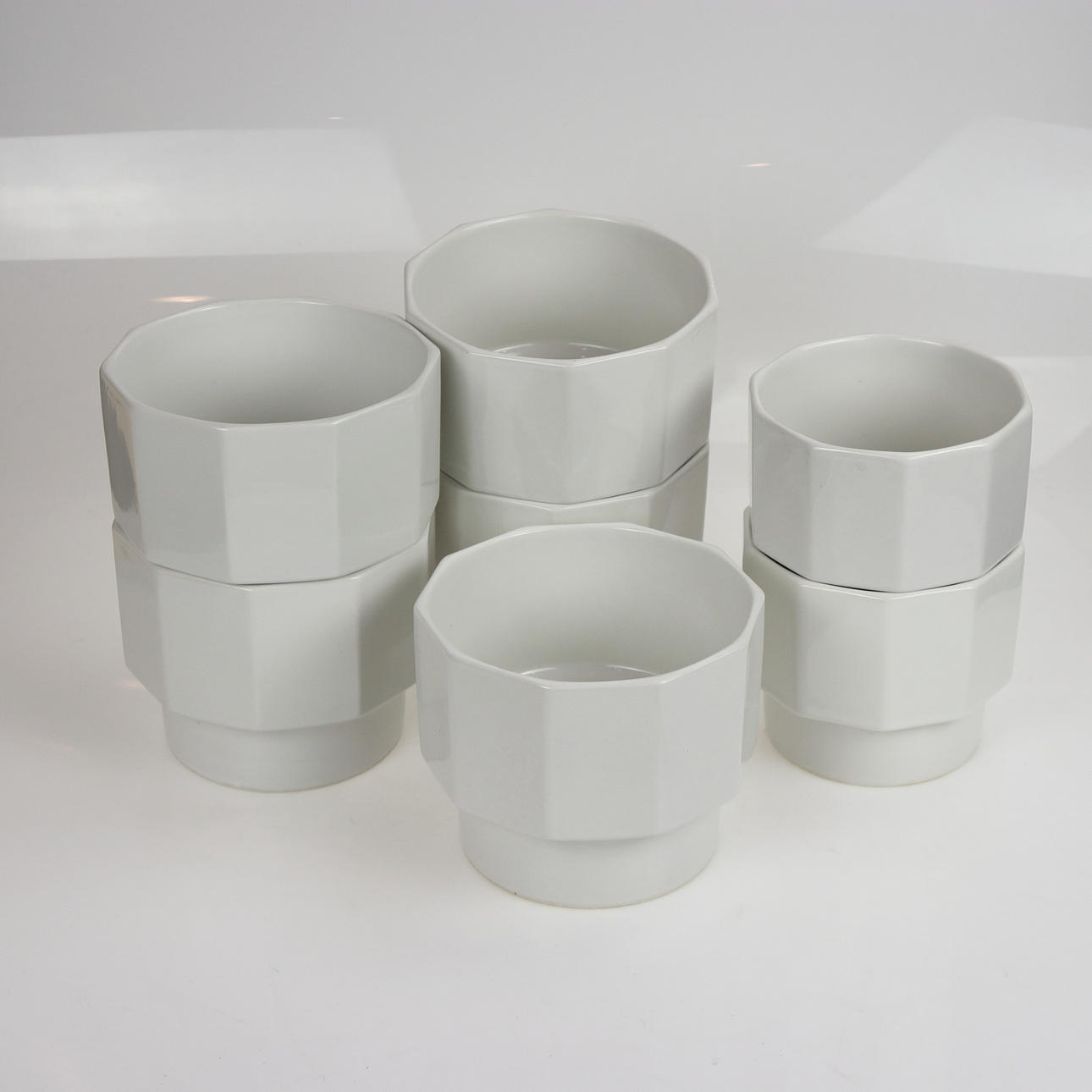 5 st. höjd 13, diameter 16,5 cm. 2 st. höjd 11,5, diameter 13 cm.