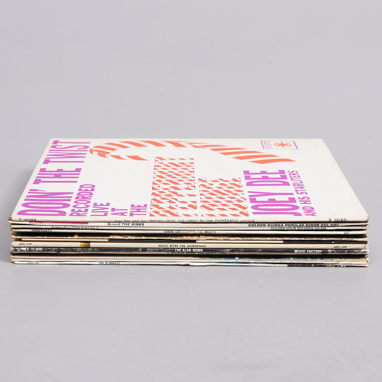 13 st vinyl-LP med The Axidentals, Merseymania (Billy Pepper & the Peppertpots), Joey Dee and his Starlighters, The Alan Bown, Sir Henry and his Butlers, Beat Hits 66/67, Blood, Sweat & Tears, Own up/Twice as much, The Walker brothers, The Who, The Kinks, The Monkees.